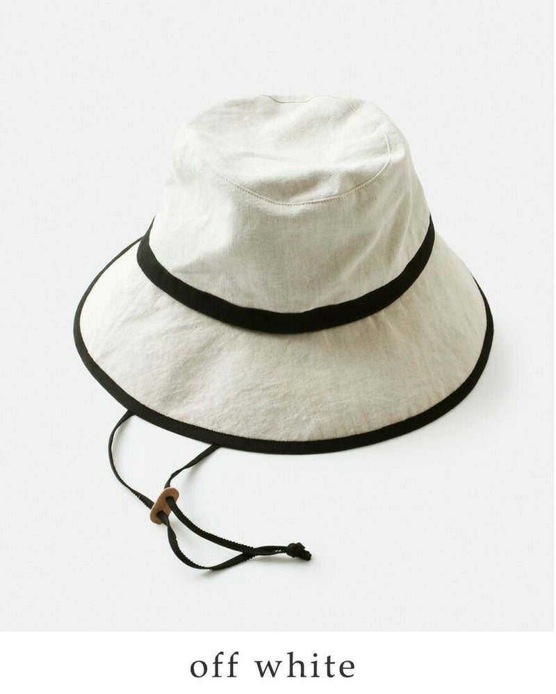 爽やかなコットンリネンのあご紐付きハット/p>