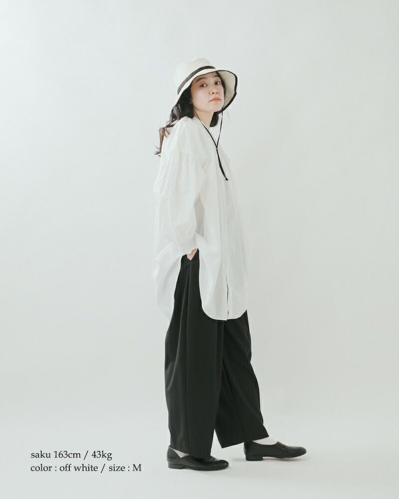 くたっとしていながらも、程良くハリのあるコットンリネン素材を使用。天然素材特有の風合いを生かしたネップや、さらっとした質感が魅力です。ナチュラルで優しい風合いが大人の女性にぴったりです。