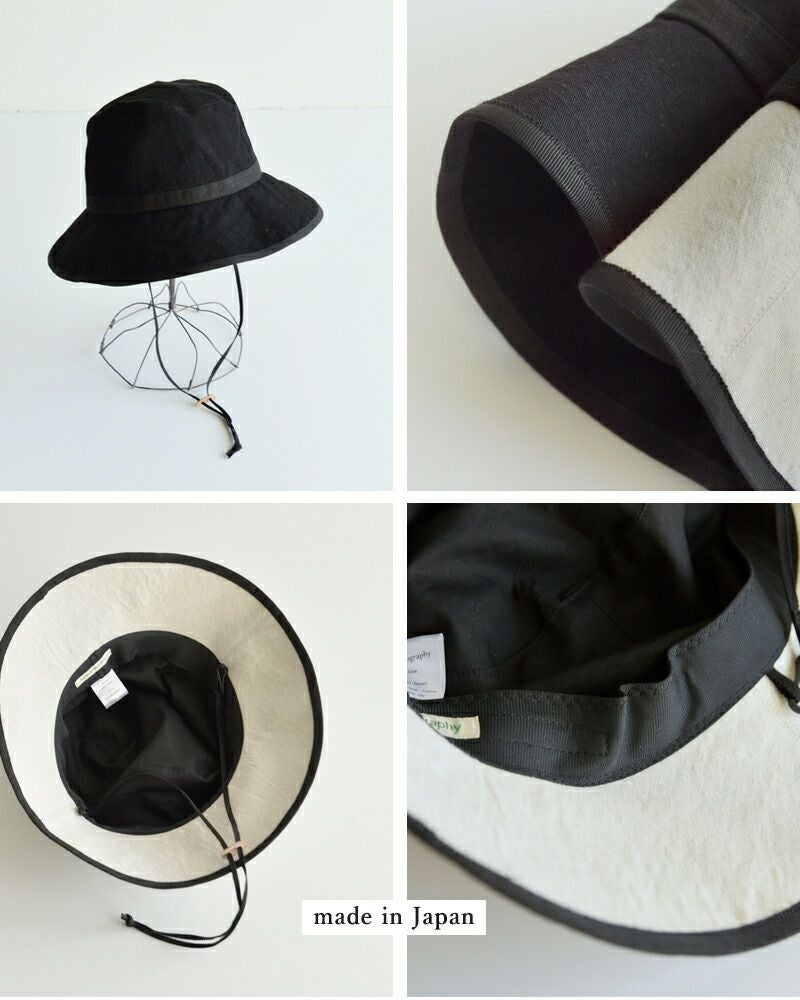Chapeaugraphy(シャポーグラフィー)より、綿麻シャンブレー / 高密度織綿麻 デイリーハットのご紹介です。清涼感のあるコットンリネン生地を使用した上品なハット。黒のハットバンドがアクセントになったデザインで、便利な顎紐付きです。柔らかく形を変えやすい素材で、つばを上げ下げしてアレンジが出来ます。深めのシルエットがエレガントな印象で、ナチュラルな大人のハットスタイルをお楽しみいただけます。
