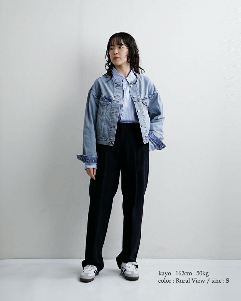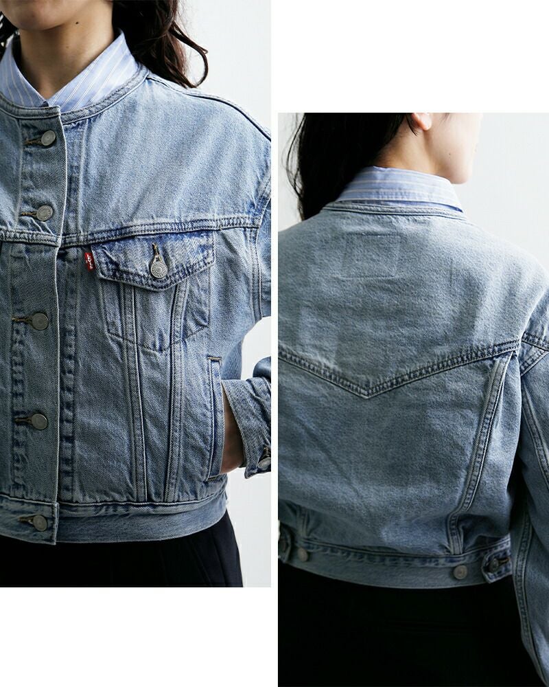 Levi'sのアイコンであるトラッカージャケットをベースに、襟を潔く取り払ったノーカラー(カラーレス)仕様へとアップデート。