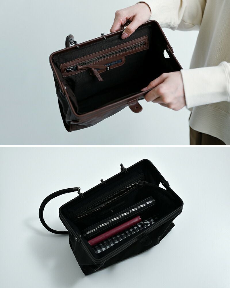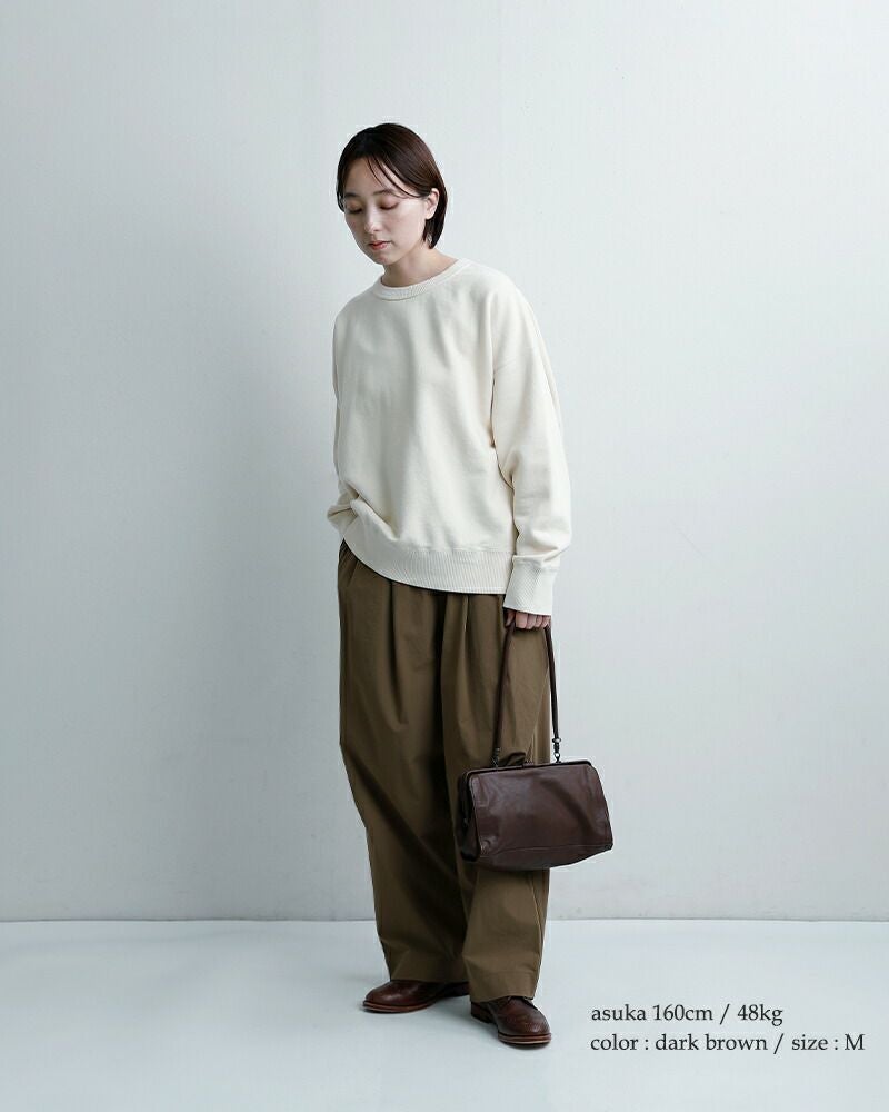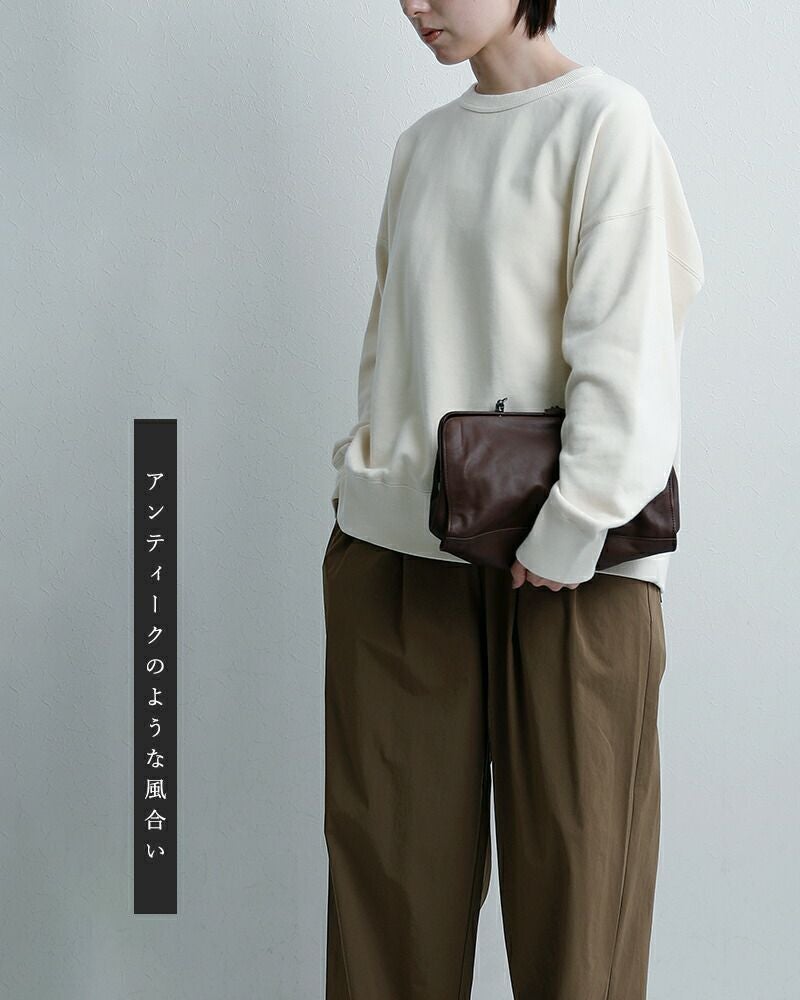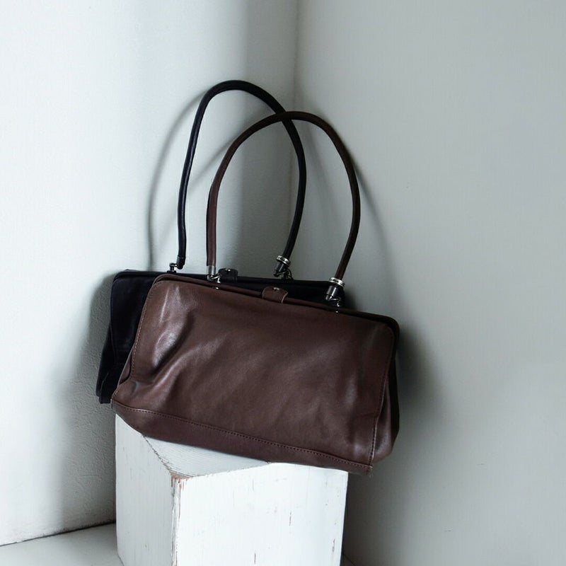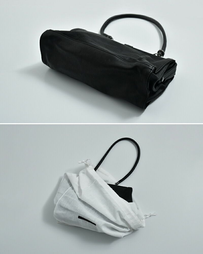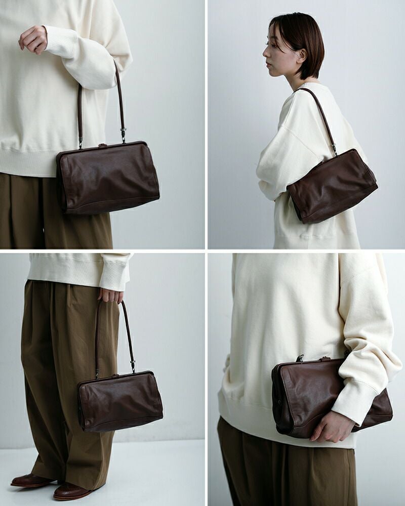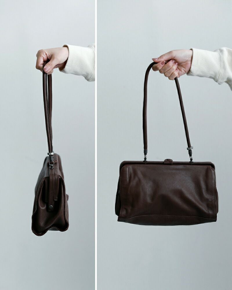 手に持つとクラシックな印象に、肩に掛ければ軽やかに。ハンドルを倒してクラッチバッグのように持つこともできるので、シーンや装いに合わせて自在に楽しめるバッグです。