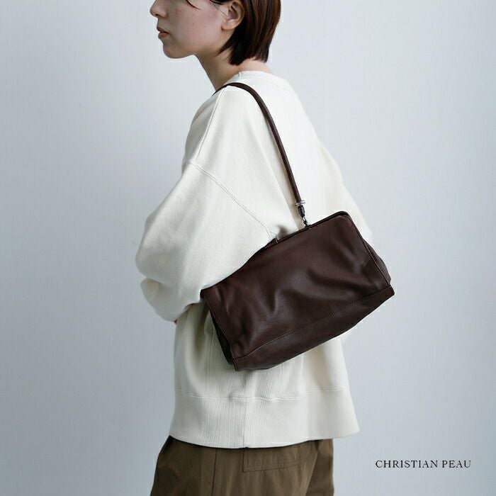 CHRISTIAN PEAU(クリスチャン・ポー・クリスチャンポー)より、カウレザー ロング ハンドル バッグをご紹介します。厳選された原皮と染料を使用し、熟練の職人によって丁寧に製作されたバッグです。天然皮革ならではの色の濃淡や筋などが見られる場合がございますが、それらは素材本来の風合いとしてお楽しみいただけます。使い込むほどに深みが増し、持つ人それぞれの表情へと育っていきます。