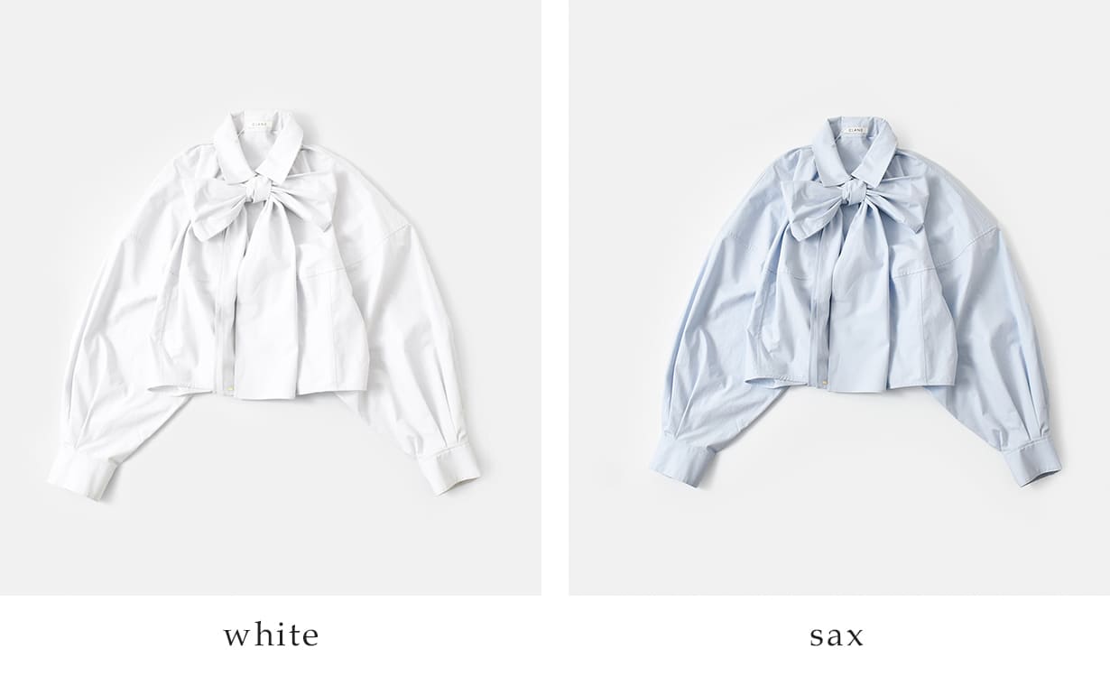 コクーンフォルムと存在感のあるリボンタイが印象的なコンパクトシャツ。