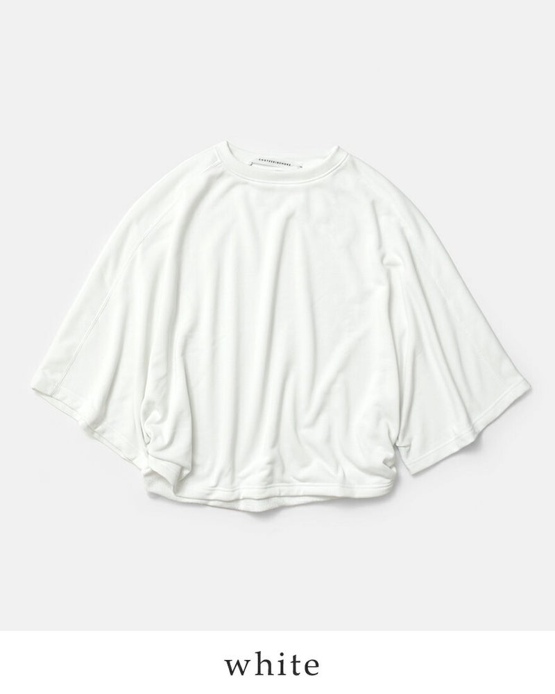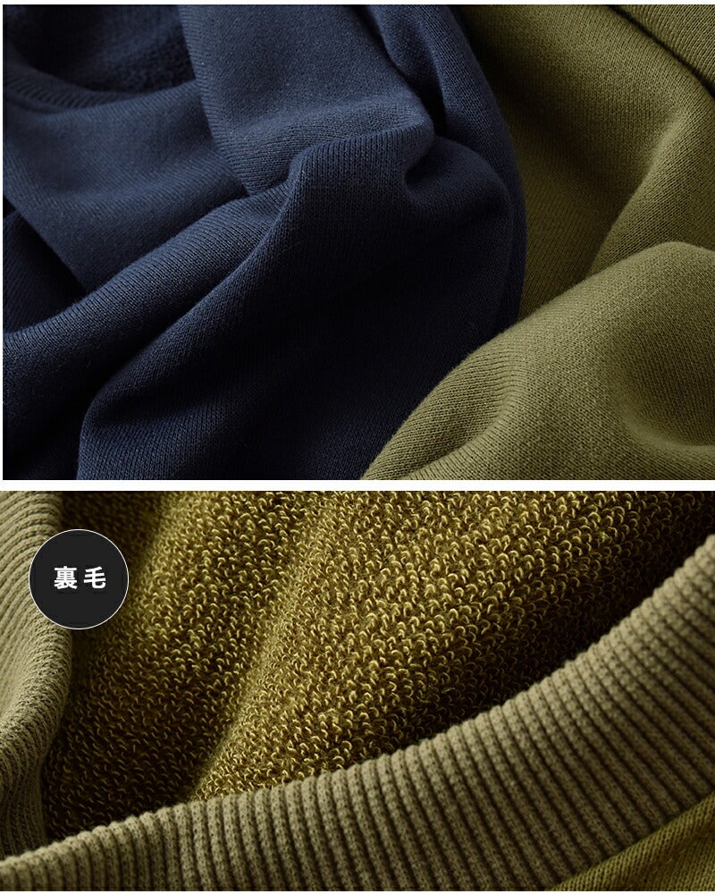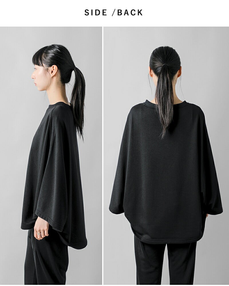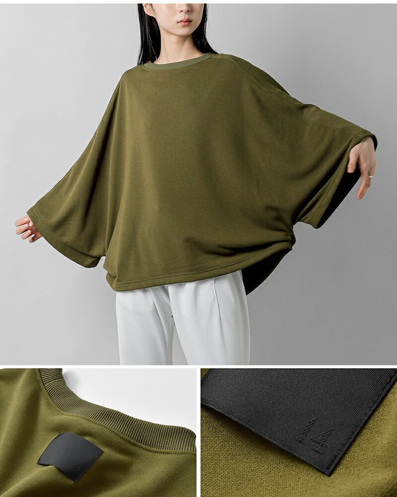 環境に配慮したリサイクルポリエステルを使用した、機能性と美しさを兼ね備えたスウェット素材。ふっくらした裏毛で程よい厚みがあり、見た目や風合いはまるでコットンのように自然でソフトな肌触りです。型崩れしにくい(縮みにくい)、しわになりにくいのも特徴的。