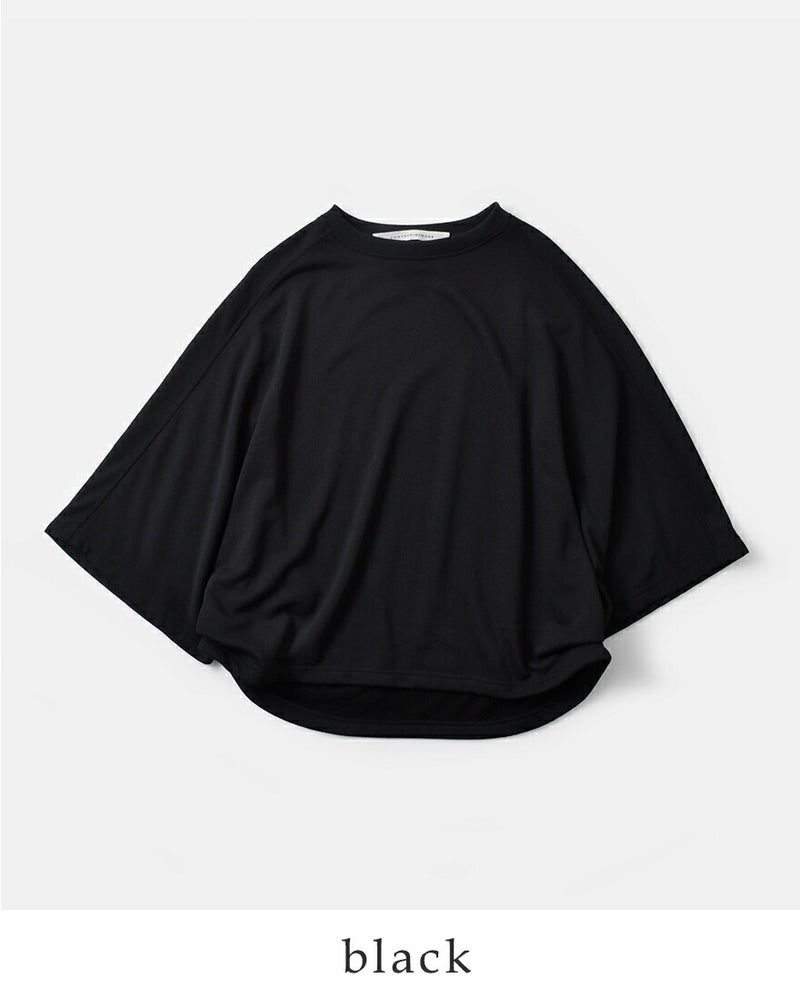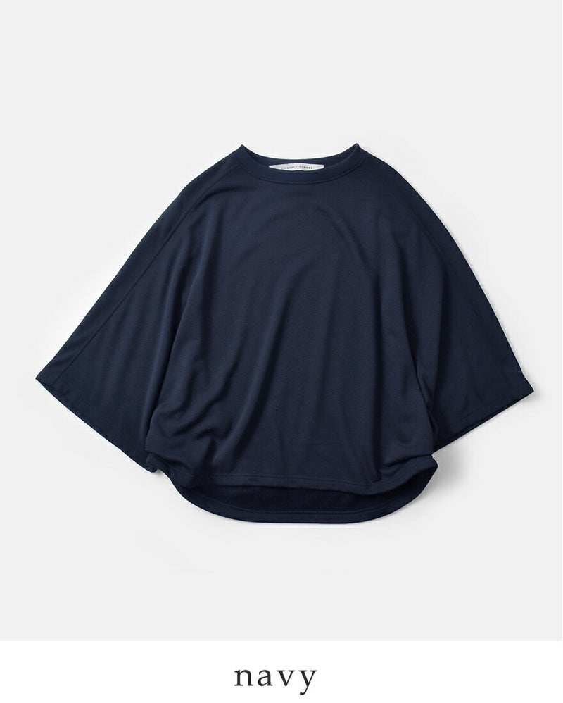 ストンと落ちるすっきりしたシルエット。ゆるやかなドレープで立体的。前後にラウンドしたヘムラインで、後ろ身頃が長くなっておりさり気なくヒップラインをカバーする丈感も嬉しい。