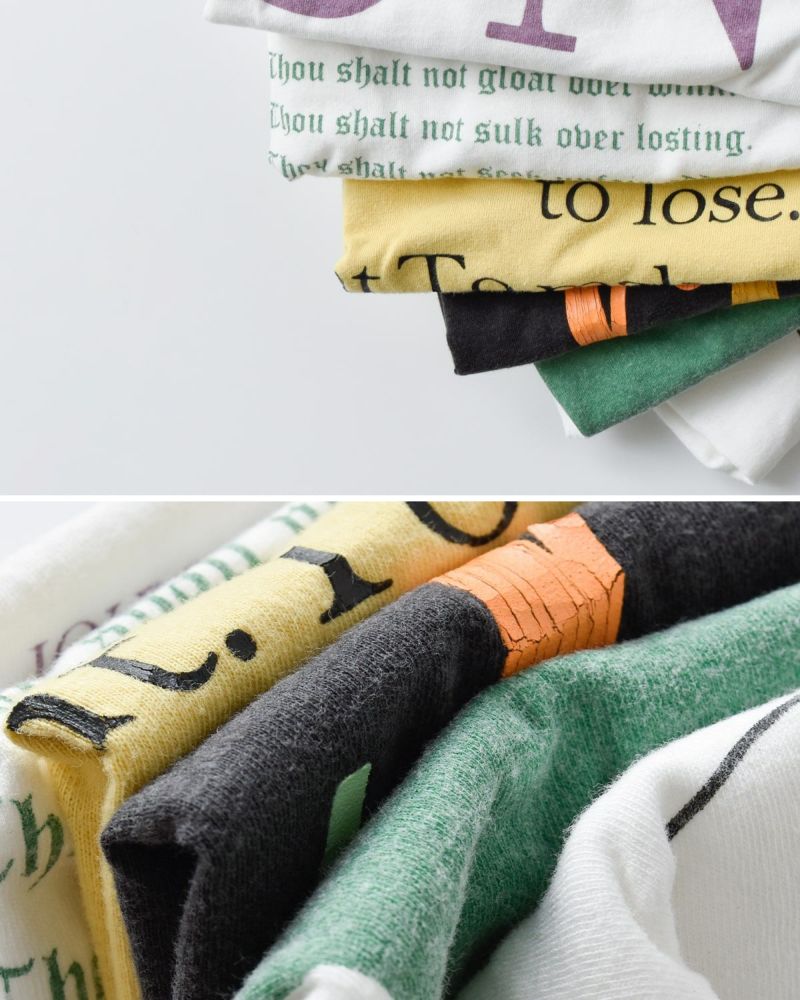 素材にはオーガニックコットンを使用。農薬や化学肥料を使用せず栽培された綿花から作られたこの生地は、肌にやさしく、自然な柔らかさとしなやかさが特長です。着用を重ねることで風合いが増し、まるで身体に馴染んでいくような心地よさを感じられます。プリントが施されていながら、しなやかでナチュラルな素材感は健在。見た目だけでなく、素肌が触れたときのやさしさにもこだわった一枚です。