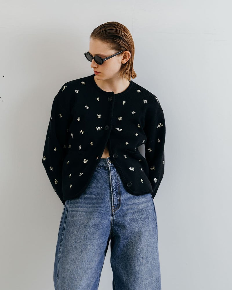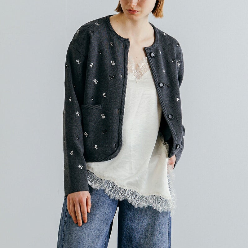 小花刺繍が華やぐスプリングニットカーディガン