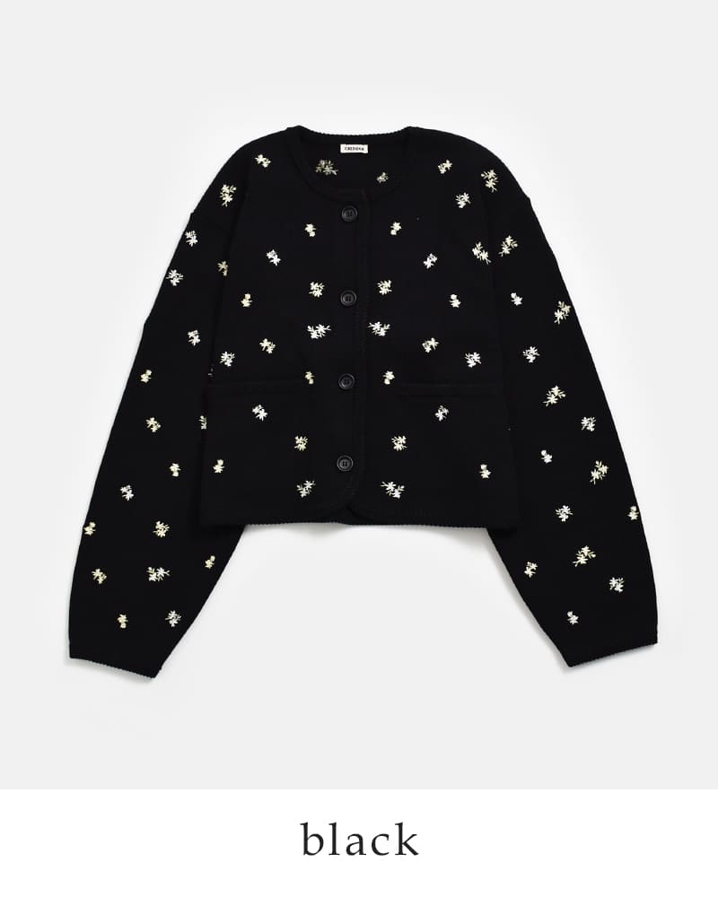 CREDONA(クレドナ)フラワー刺繍春ニットカーディガン伸縮性高密度張り感家庭洗濯華やかFLOWEREMBROIDERYCD 1426111017-0