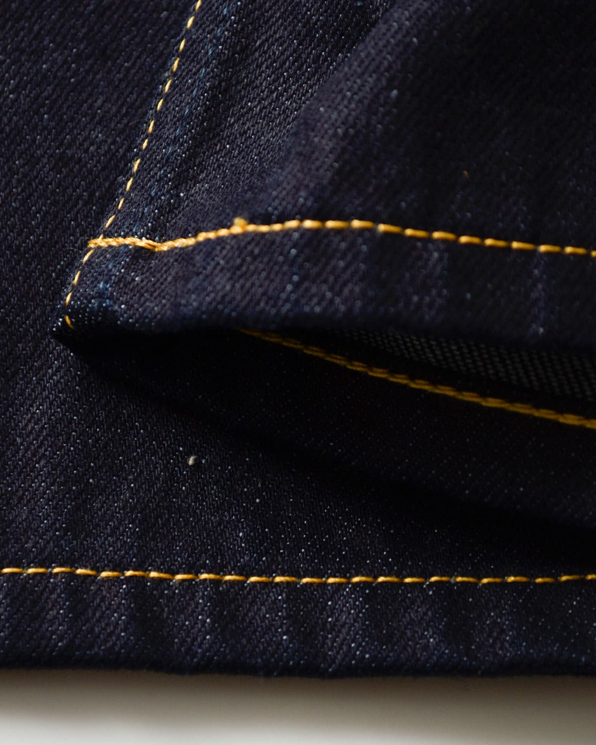 生地には12オンスのセルビッチデニムを使用し、程よい厚みとハリ感がありながらも、履き込むごとに柔らかくなじむ質感。摩擦強度を高めた特殊コーティングにより色あせしにくく長持ちし、ワンウォッシュ加工で自然な風合いと履き始めの快適さを両立しています。