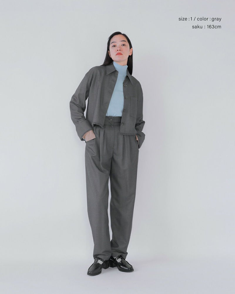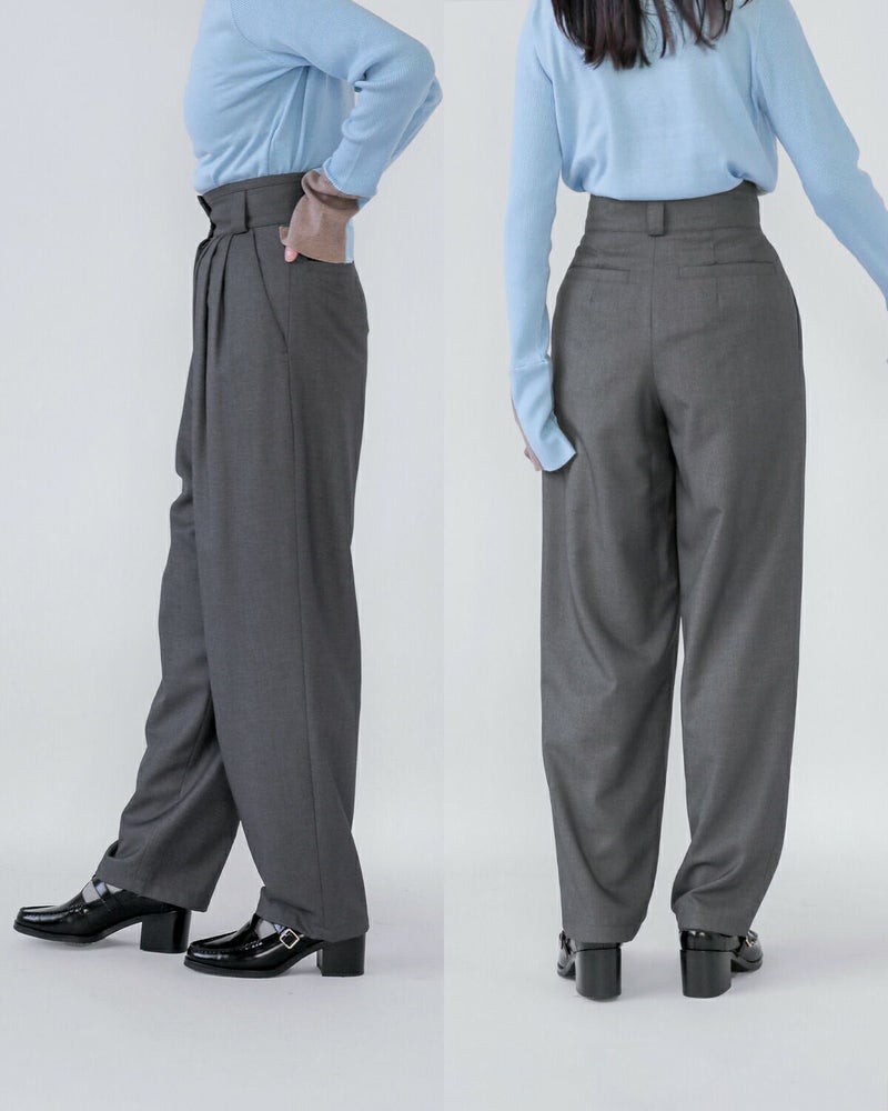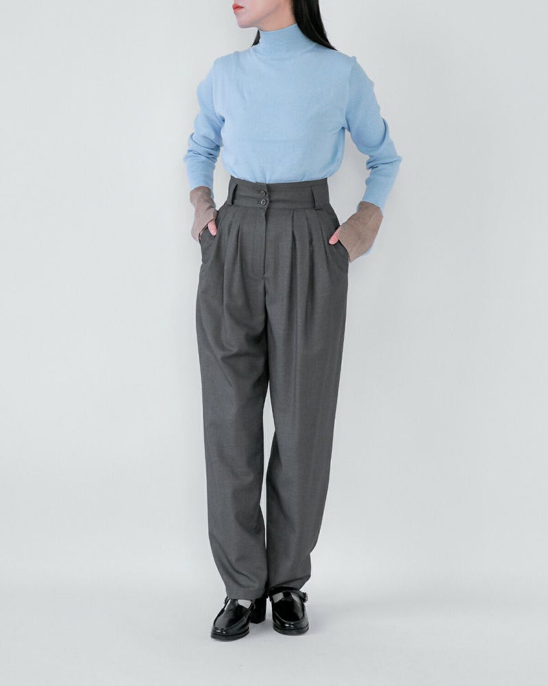 タイトル:クラシックでフォーマルな印象のタック入りパンツ