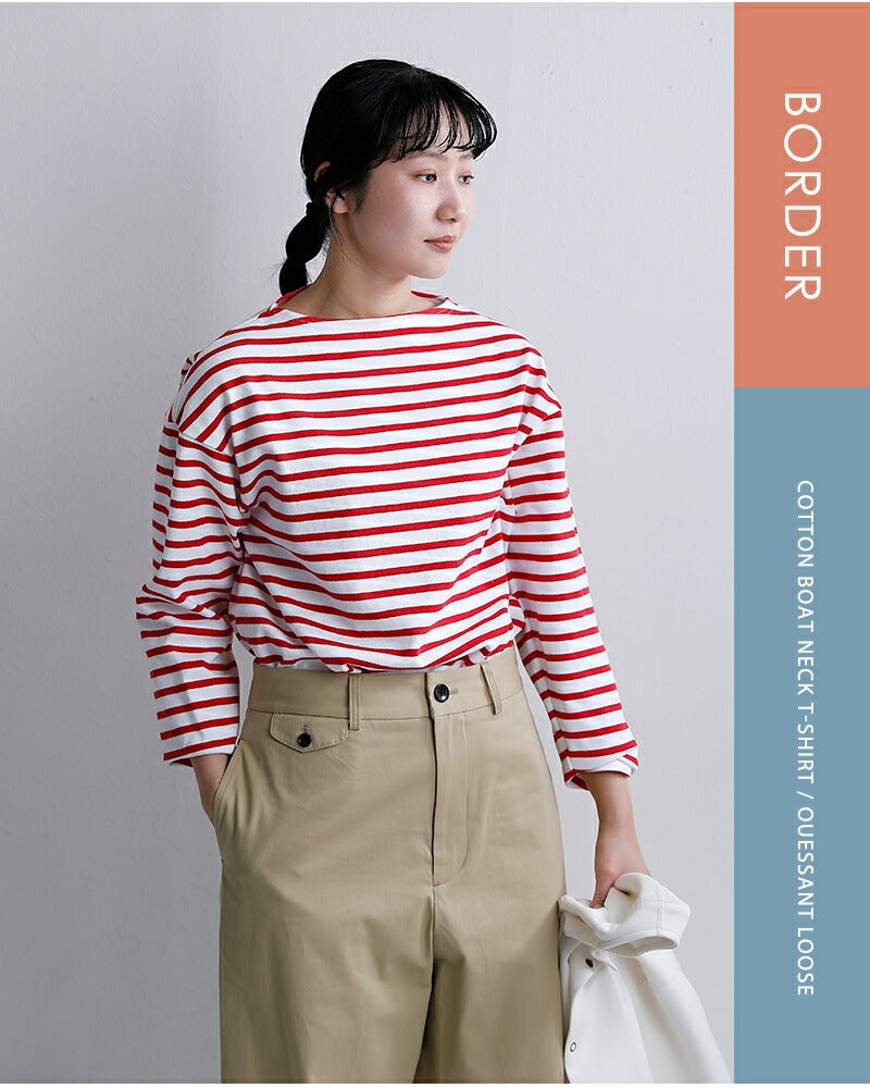 SAINTJAMES(セントジェームス)より、コットンボートネックウェッソンルーズTシャツ“OUESSANTLOOSE”をご紹介します。定番「OUESSANT」をベースに、程よくゆとりを持たせたルーズシルエットに仕上げた一枚。しっかりとしたコットン素材は、着込むほどにやわらかく馴染み、長く愛用できます。ボートネックのすっきりとした首元と、リラックス感のあるシルエットで、1枚でもサマになるデザイン。無地とボーダーの2タイプから選べ、気分やスタイルに合わせた着こなしが楽しめます。