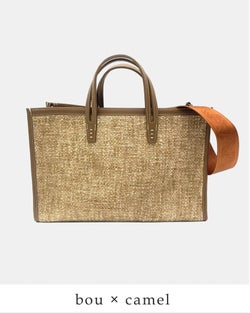 ■BREAD M A VACATION(ア ヴァケーション)より、2way スクエア トートバッグ “BREAD M”をご紹介します。13インチのノートパソコンやiPadが入るサイズの横型ハンドバッグ。モデル名は食パン一斤のようなフォルムに由来しています。ハンドル部分は二股にくり抜きですっきりと細く、女性の華奢な手でも持ちやすいデザインもポイント。 内側には取り外し可能なスナップ付きのポーチにあり細かな荷物を収納することが可能です。女性にとって使い勝手が良い機能性やサイズ感を備えながら、少し振り切った個性とディティールを駆使して情緒的にバッグを仕上げています。