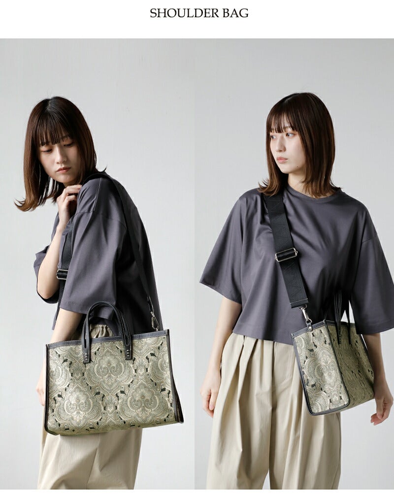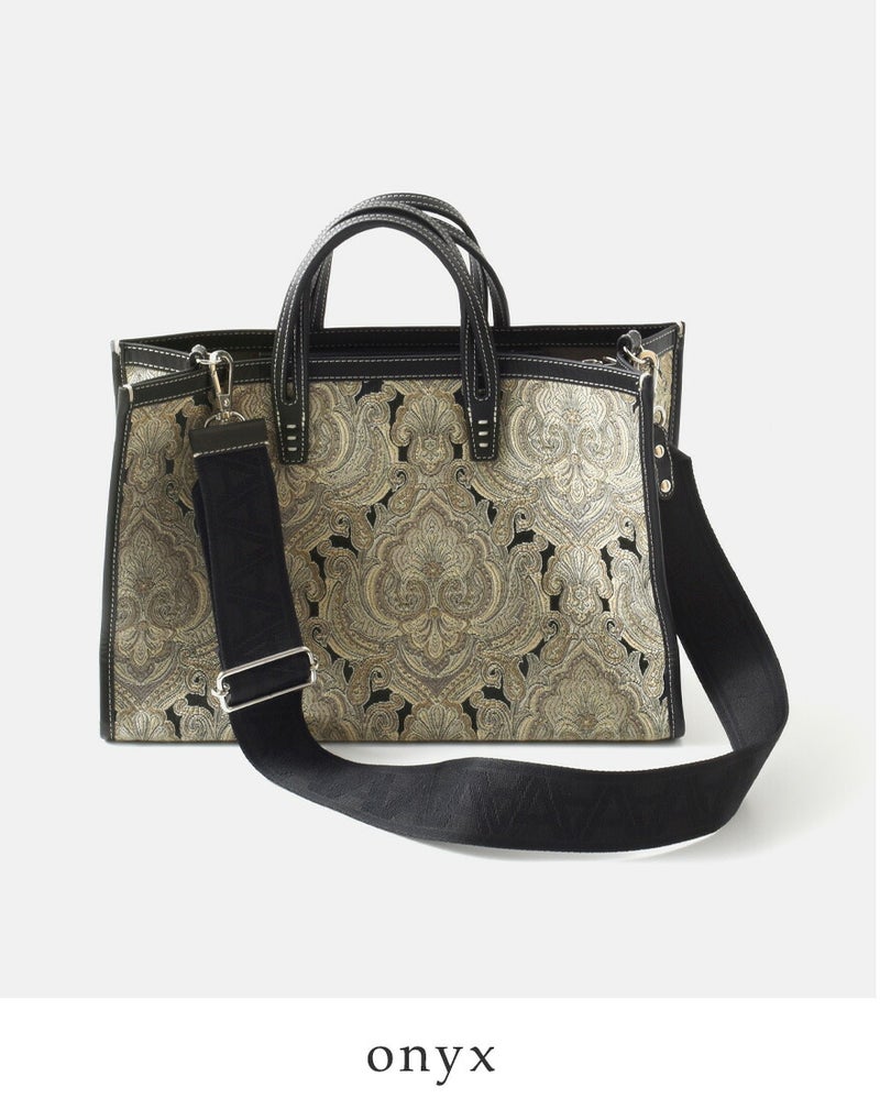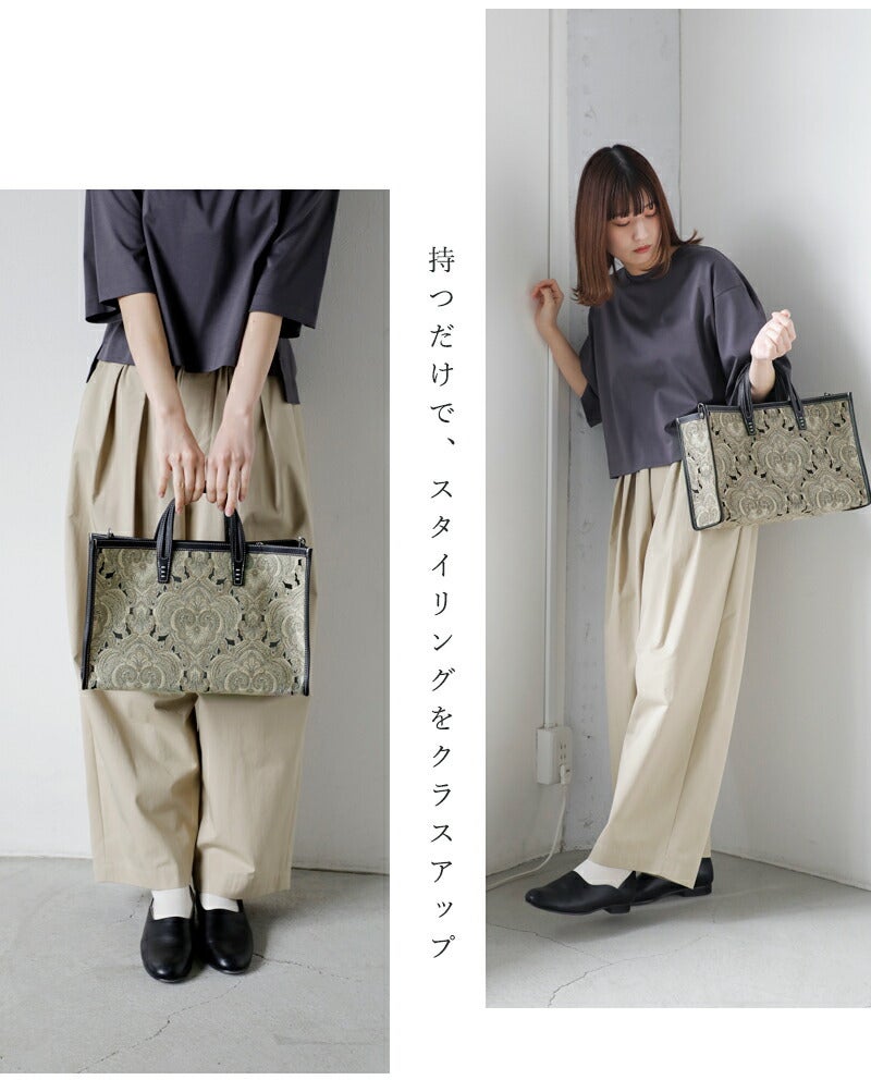カジュアルなスタイリングにもキレイなスタイルにも合わせられる新鮮な柄。織りによって浮き出した模様が素敵で、プリントでは出せない趣があり、持つだけで存在感を放ちます。 裏地も心地よい肌触りの上質な素材で仕上げ、さり気ないこだわりが嬉しい。