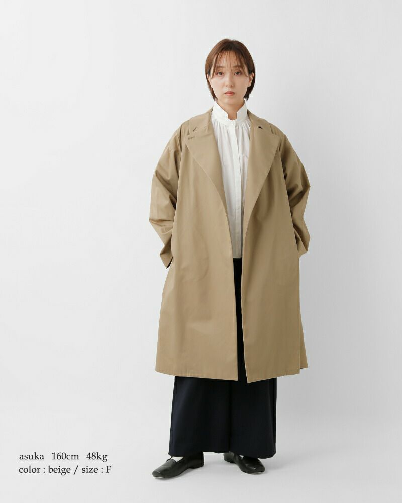 ハリとコシのある生地を使用し、軽やかに仕立てられたトレンチライクなデザイン。