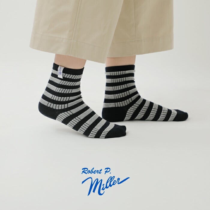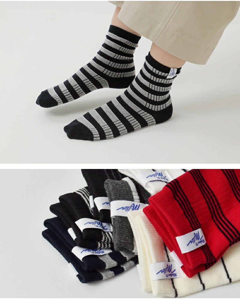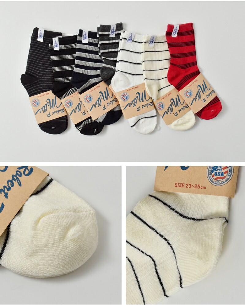MILLER(ミラー)より、1P ボーダー クルーソックスをご紹介します。アメリカで長く愛されるインナーウェアブランドのMiLLER。肌触り・着心地が良く、伸縮性にも優れた”パネルリブ”仕様のソックス。ボーダー柄はカジュアルなアイテムと相性抜群で、コーディネートのアクセントに活躍してくれそうです。レザーシューズなどに合わせても素敵です。