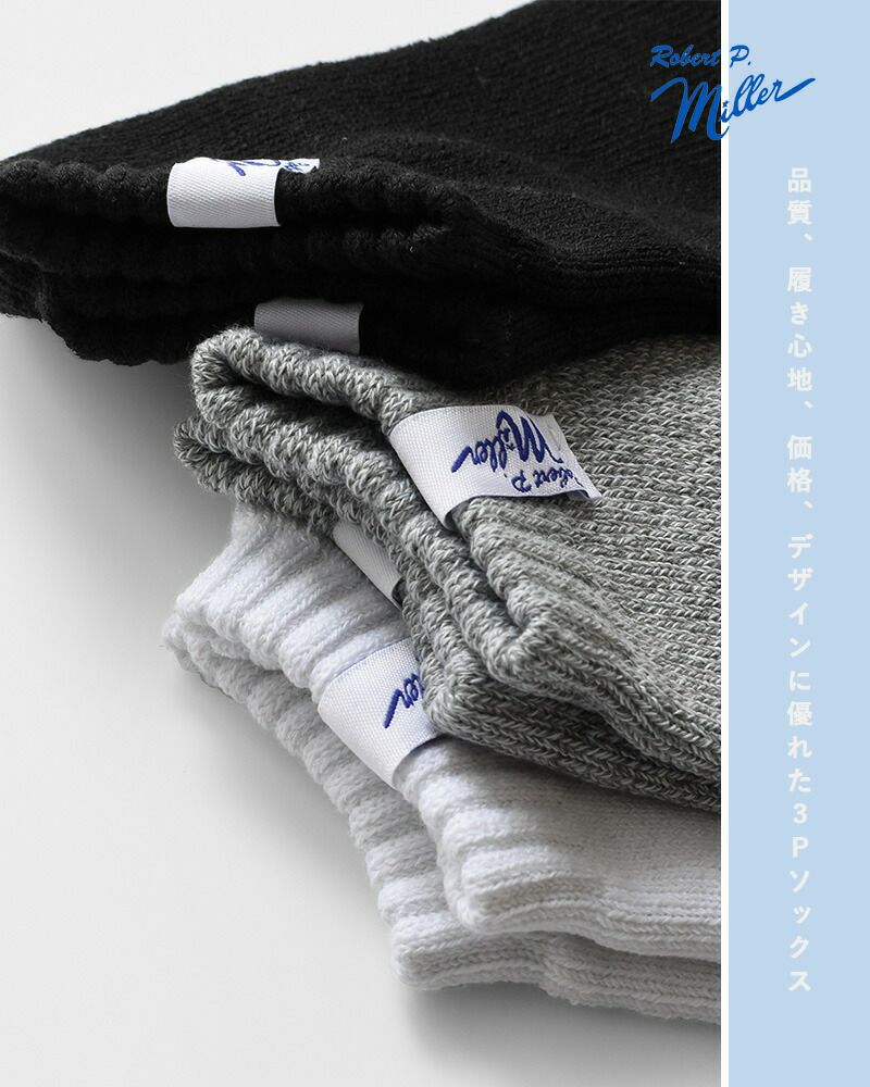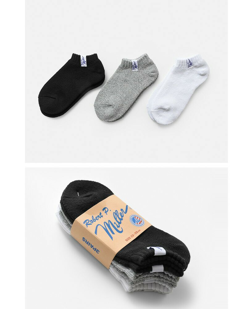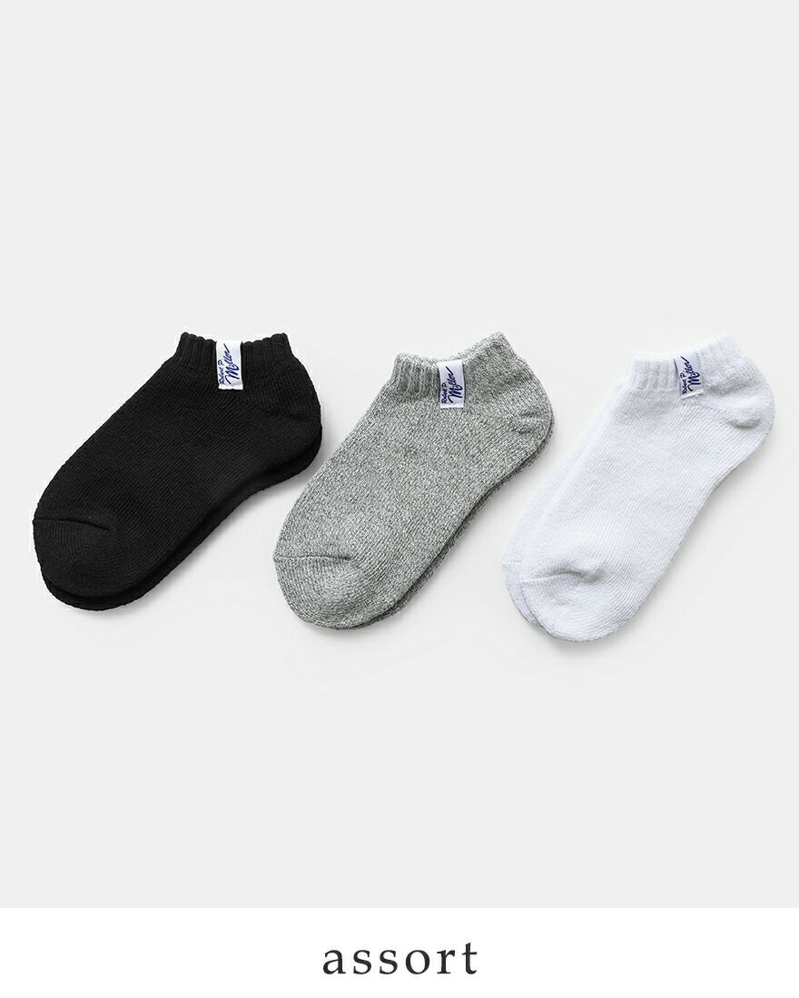 MILLER(ミラー)よりアソート スニーカー ソックス 3足組のご紹介です。品質、履き心地、価格、デザインに優れた3Pソックス。ワントーンでシンプルなデザインに、履き口にタグを配置したアメリカンなデザイン。スニーカーにもキレイめにも合わせやすく、靴と同色で合わせるとタグがワンポイントになり、ワンランク上のコーディネートに。お求めやすい価格でありながら、「おしゃれは足元から」をかなえる必須アイテムです。