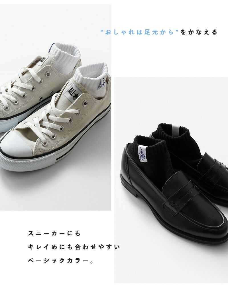 伸縮性があってフィット感の心地よい履き口にはロゴのタグを配置し、アメリカンなデザイン。さりげなく見せるおしゃれにはかかせないスニーカーソックス。