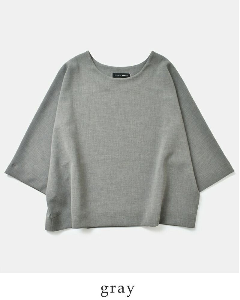 TRAVAIL MANUEL(トラバイユマニュエル)より、ダブルクロスTブラウスをご紹介します。ほのかな光沢が上品なダブルクロスがフォーマルシーンにぴったりなブラウスです。ボタンもファスナーもないプルオーバータイプのトップスで、ゆったりと着られる楽な着心地が魅力。入学式・卒業式・結婚式などの冠婚葬祭はもちろん、休日の日のおでかけや、普段の装いにも着られて、オンオフ問わず活躍してくれます。同素材のパンツもご用意があり、セットアップで合わせていただくと、雰囲気のあるオケージョンスタイルをお楽しみ頂けます。
