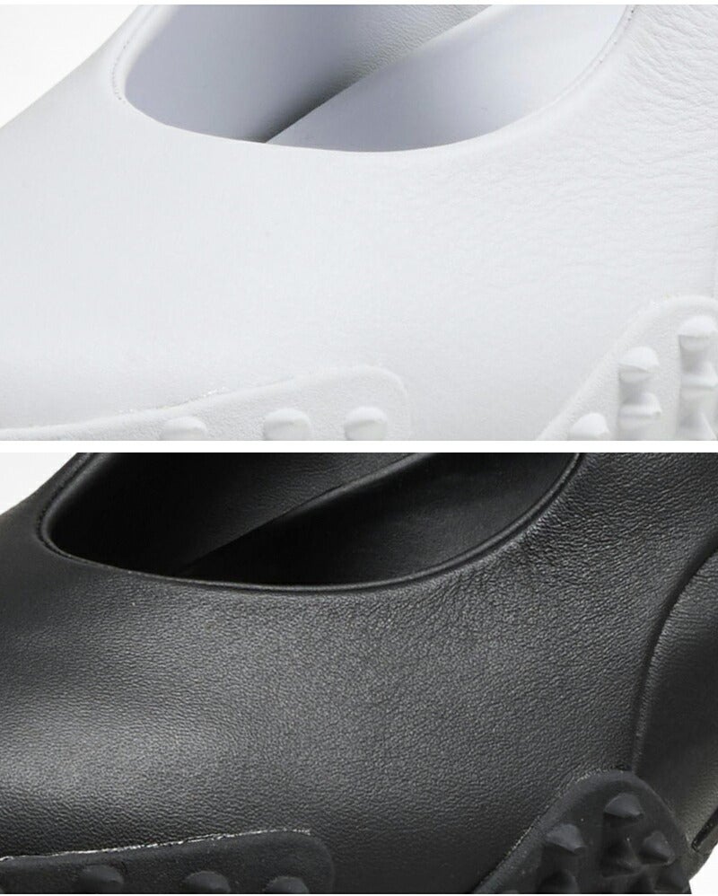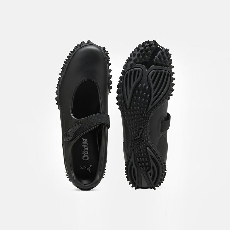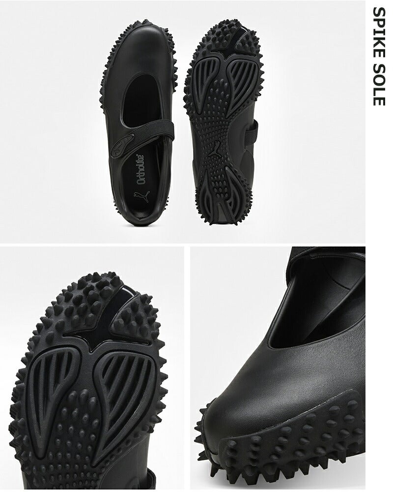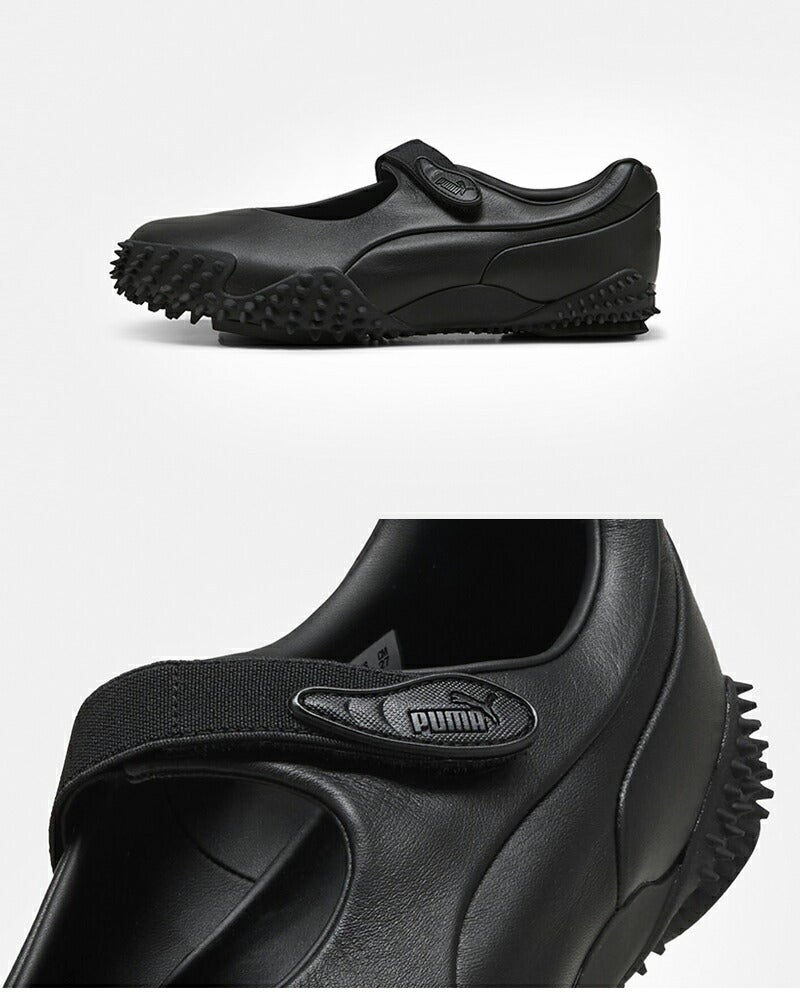 本作は、オリジナルの大胆なフォルムにメリージェーン風ストラップとレザーアッパーを組み合わせ、