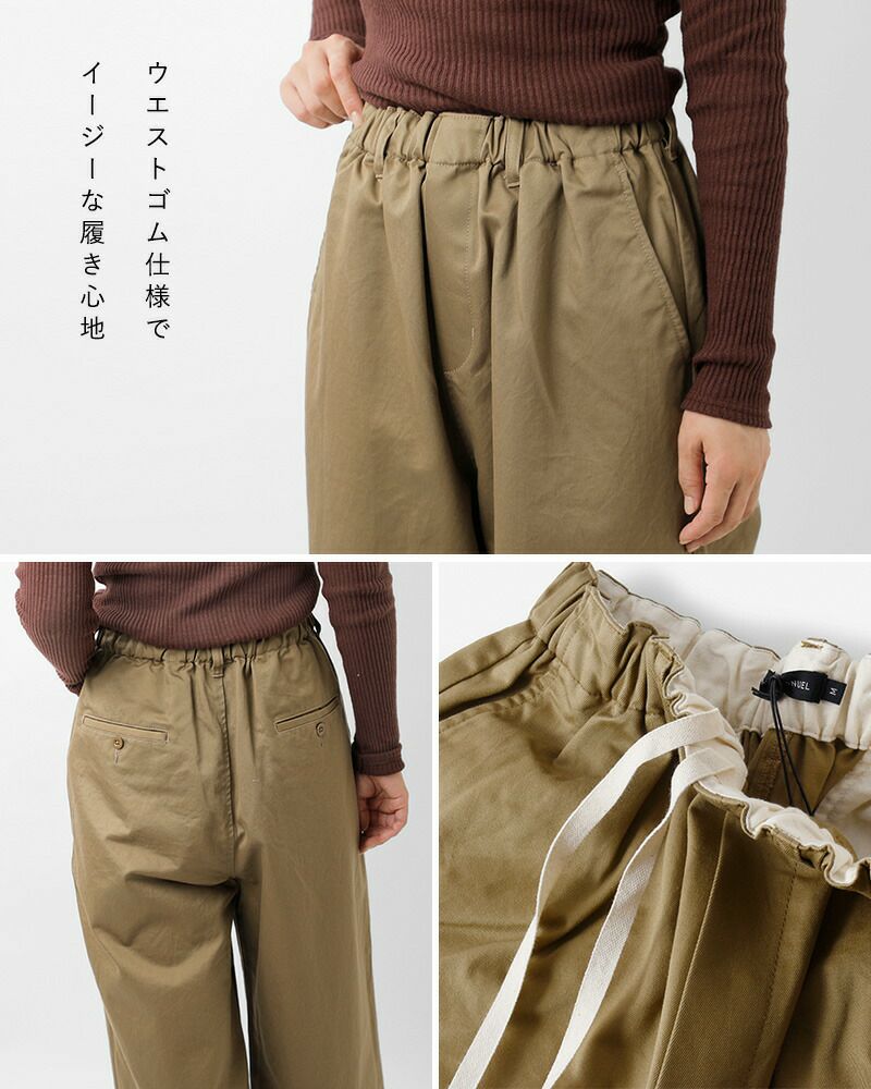 ウエストはゴムとひものイージー仕様。両サイドとバックの両側にもポケットを配置。フェイクの前立てが配置されているのでラフになりすぎないスタイルに。