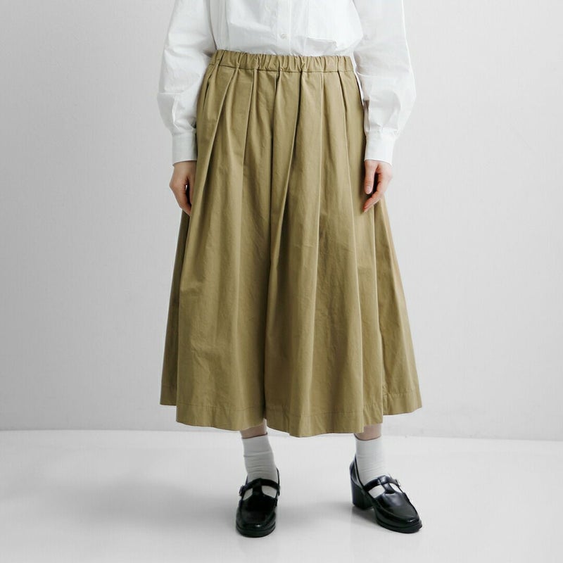 TRAVAIL MANUEL(トラバイユマニュアル)より、コットン コンパクト ウェザー タック フレア スカートをご紹介します。軽くて丈夫なコットンウェザー素材を使用した、セミロング丈のスカート。ウエストはゴム仕様でイージーな穿き心地。タックから控えめに広がる美しいフレアシルエットで、大人のスタイリングにぴったり。普段使いでカジュアルにも、おでかけできれいめスタイルにもお使いいただけます。