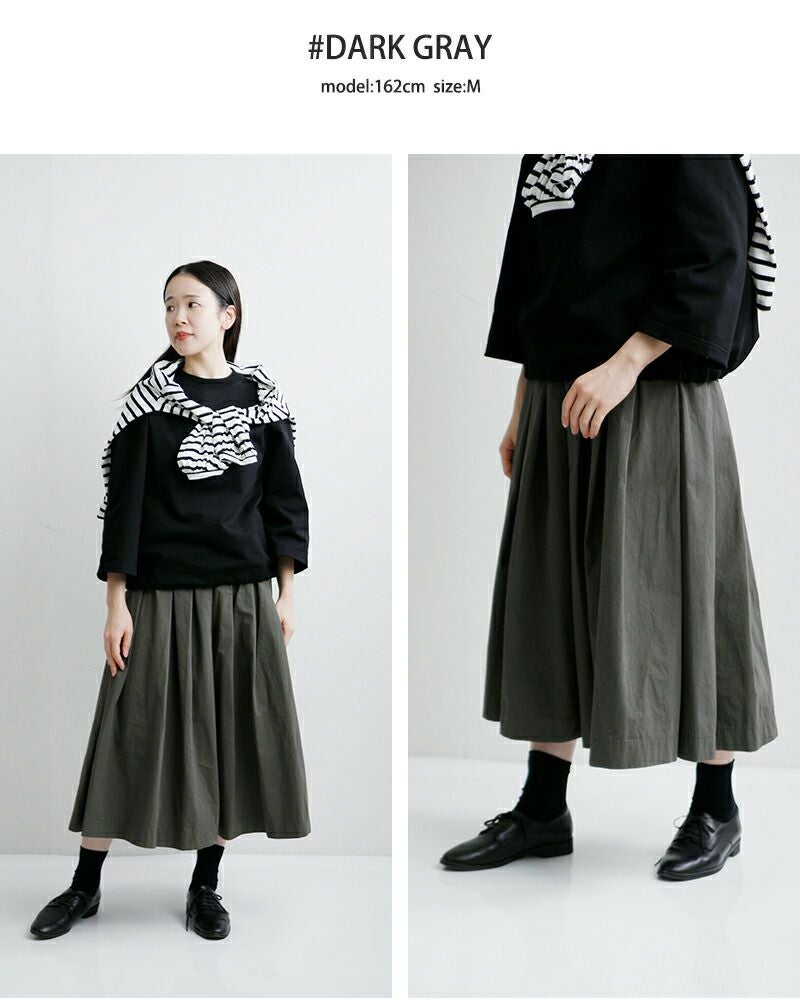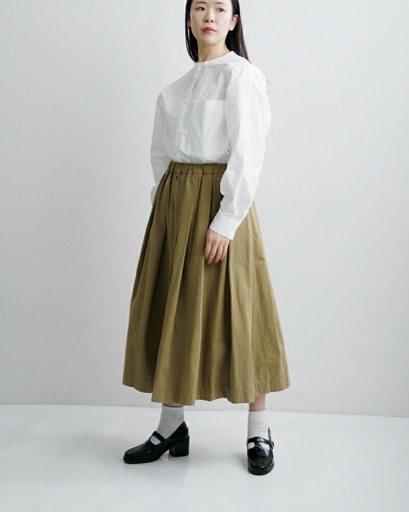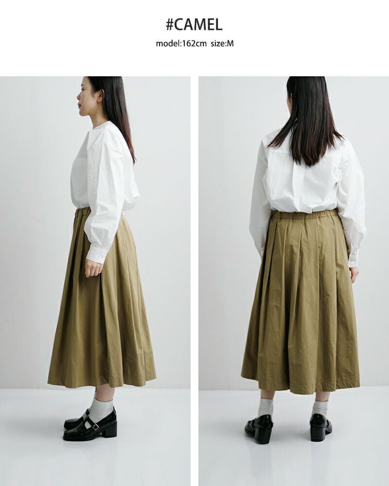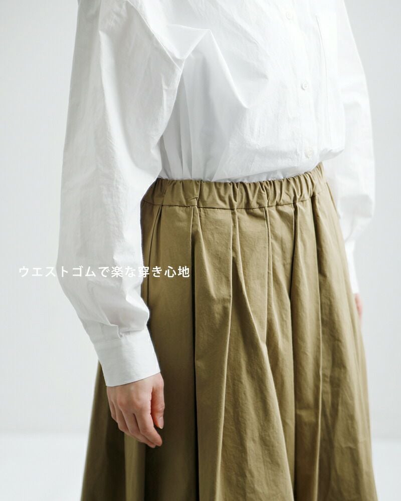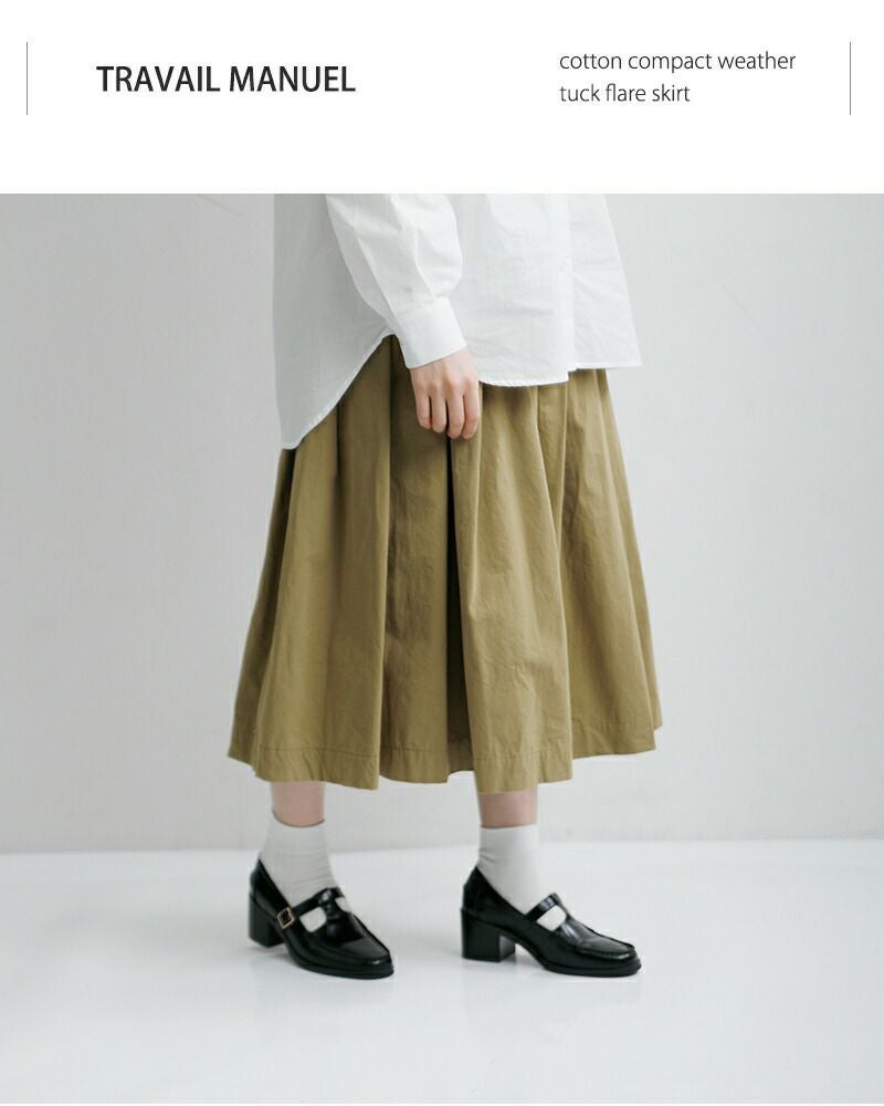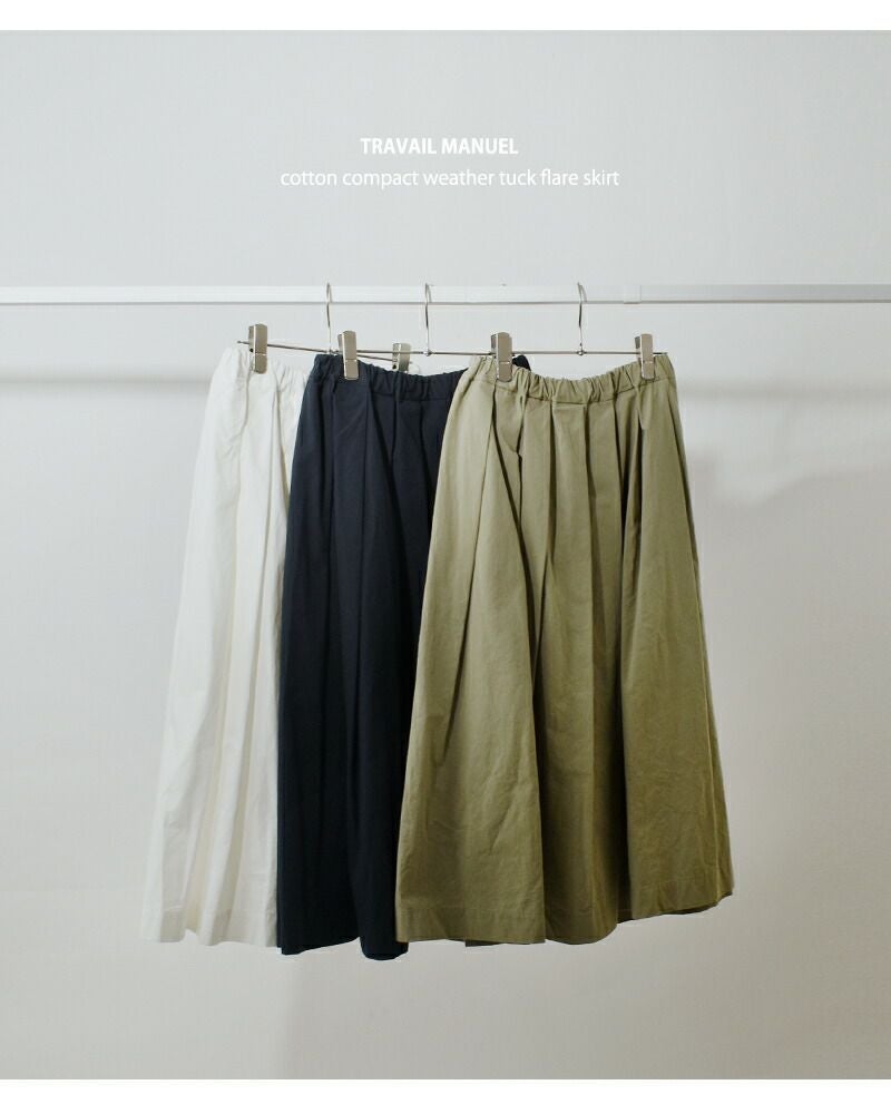 控えめなフレアシルエットが美しいコットン100%のドライタッチな生地が魅力のタックフレアスカート TRAVAIL MANUEL トラバイユマニュアル コットン コンパクト ウェザー タック フレア スカート 5077 レディース 2026ss新作 春夏【サイズ交換初回無料】