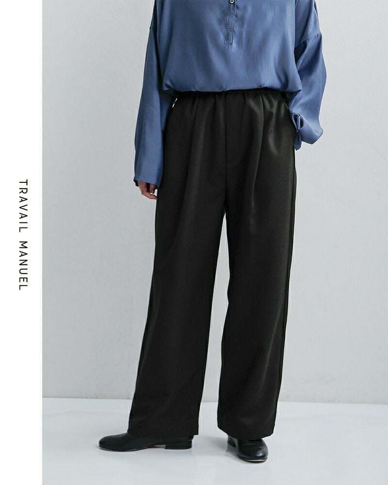 日常からオケージョンまで大人の余裕を感じさせるイージーパンツウエスト総ゴムスピンドル入学式卒業式ビジネスの場面でも清潔感 TRAVAIL MANUEL トラバイユマニュアル イージー ウーステッド プラン パンツ 5104 レディース 2026ss新作 春夏【サイズ交換初回無料】