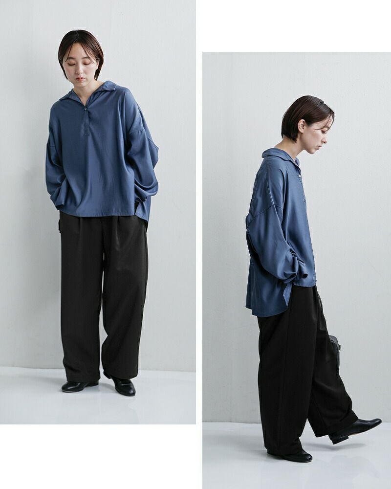 同素材のジャケットやブラウスと合わせてセットアップにすれば、入学式などのフォーマルな場にもぴったりです。あえてオーバーサイズのニットやスニーカーで着崩しても、生地に上品な艶があるおかげでラフになりすぎず、大人の余裕を感じさせるスタイルに仕上がります。