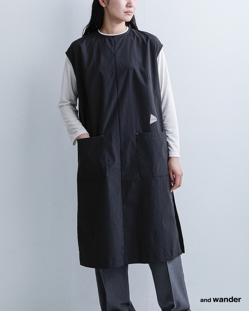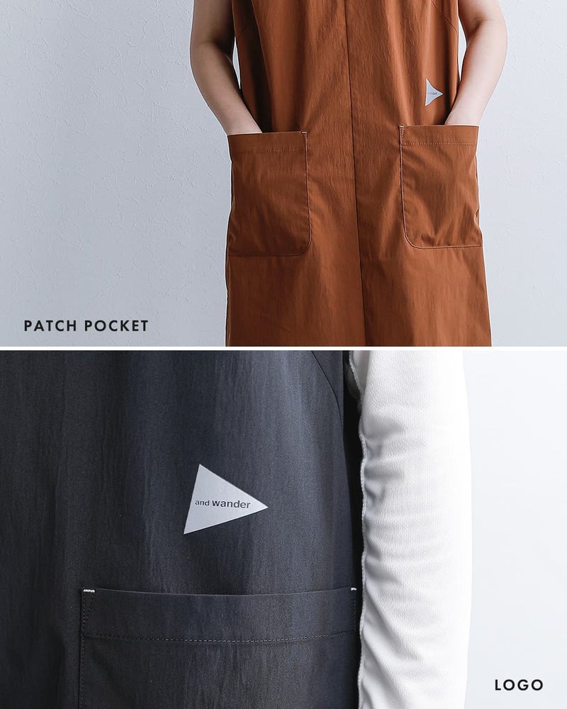and wander(アンドワンダー)より、UVカットストレッチドレス UV cut stretch SS dressのご紹介です。リサイクルポリエステルを一部使用した、天然素材のような風合いのストレッチドレス。軽やかな着心地で速乾性もあり、紫外線から肌を守ります。フロントのポケットとブランドロゴがアクセントになった、デイリーにもお出かけにも使える一枚です。
