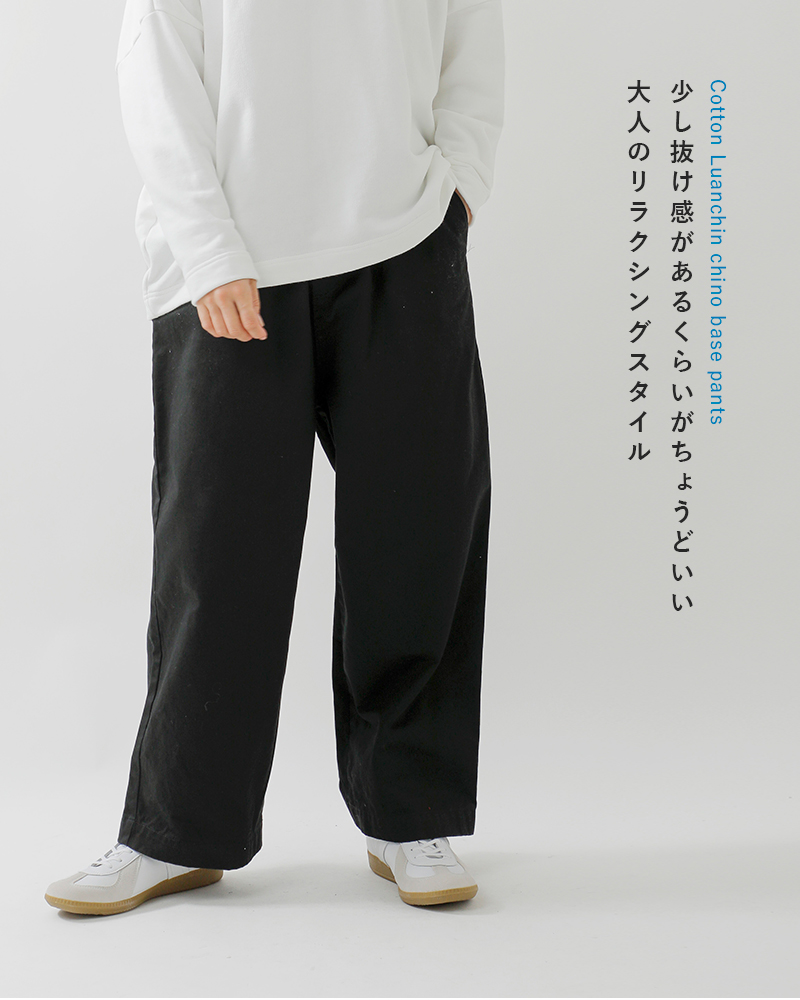 ハリのあるチノ生地を使用したウエストゴム楽ちんリラクシンなワイドパンツ TRAVAIL MANUEL トラバイユマニュアル コットン ルアンチン チノ ベースパンツ 5097-same1-tr 2025aw新作 レディース【サイズ交換初回無料】