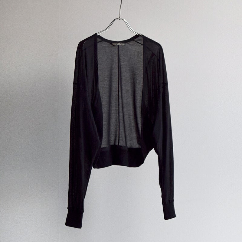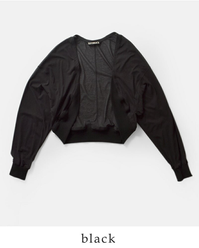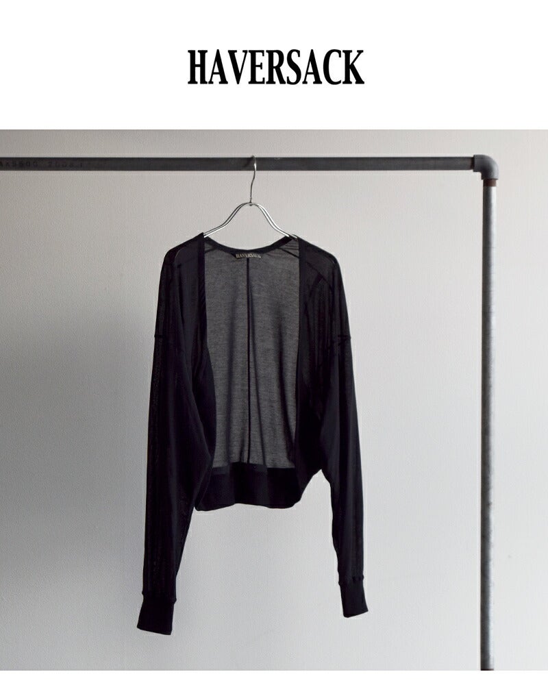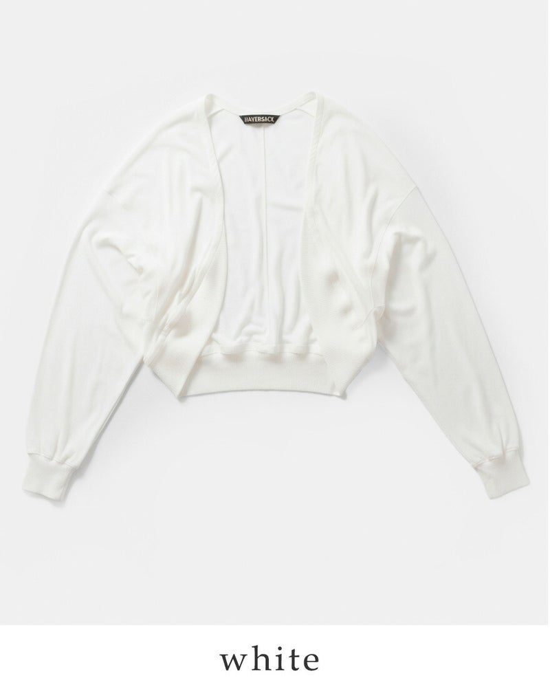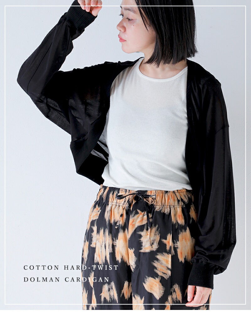 HAVERSACK(ハバーサック)より、コットンハードツイスト ドルマンカーディガンをご紹介します。 強撚コットンならではのドライで清涼感のある風合いが魅力のドルマンカーディガン。 シャリっとしたタッチで肌離れがよく、季節の変わり目から夏場の羽織りとしても快適に着用できます。 身幅にゆとりを持たせたドルマンスリーブは、身体のラインを拾わず、自然な抜け感を演出。 動きに合わせて生まれる柔らかなドレープが、シンプルながらも表情のある佇まいに仕上げています。 前立てや裾はミニマルにまとめ、HAVERSACKらしい上品さをキープ。 Tシャツやワンピースの上にさっと羽織るだけで、スタイリングを軽やかに整えてくれる一枚です。