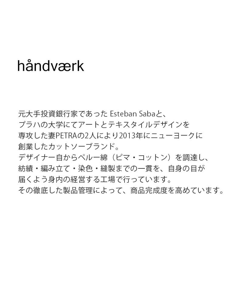 上質で柔らかく、透けにくい特性がある60/2ジャージーコットン素材のTシャツ handvaerk ハンドバーク 60/2ジャージー ボトルネック 6分袖 Tシャツ 6207 2026ss新作 春夏 【海外出荷不可】