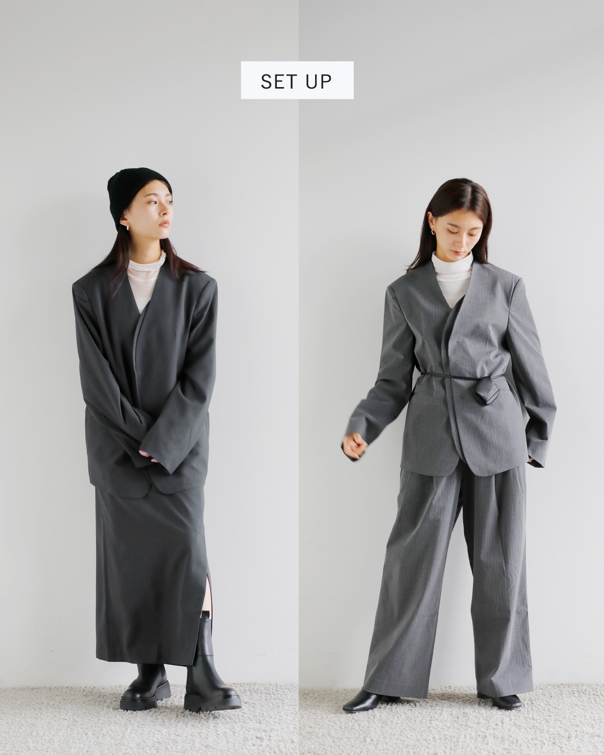 fabric: グレー:表地/ポリエステル68% レーヨン28% ポリウレタン4% 裏地/ポリエステル100%