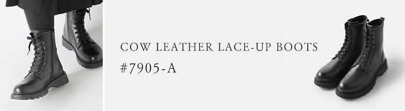 しなやかさと適度なコシを併せ持つカウクラストレザーを使用。履き込むほどに自然な艶が増し、経年変化を楽しめる上質な素材です。
