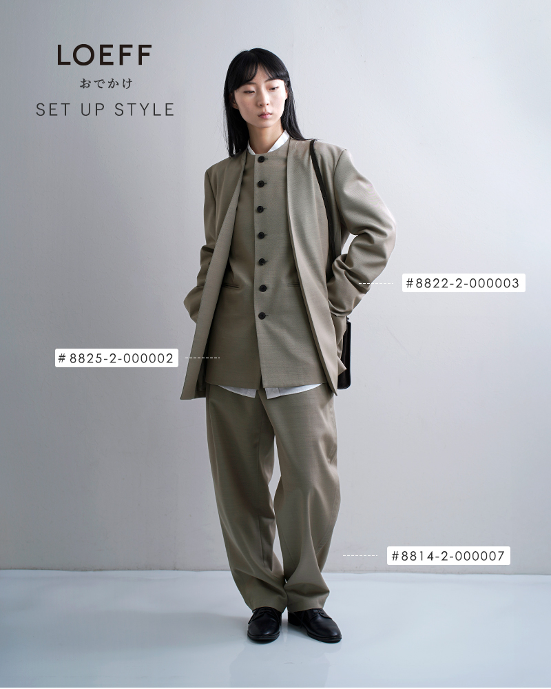 LOEFF(ロエフ)より、高密度 ウール ギャバ ノーカラー ジャケットのご紹介です。