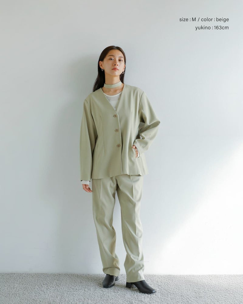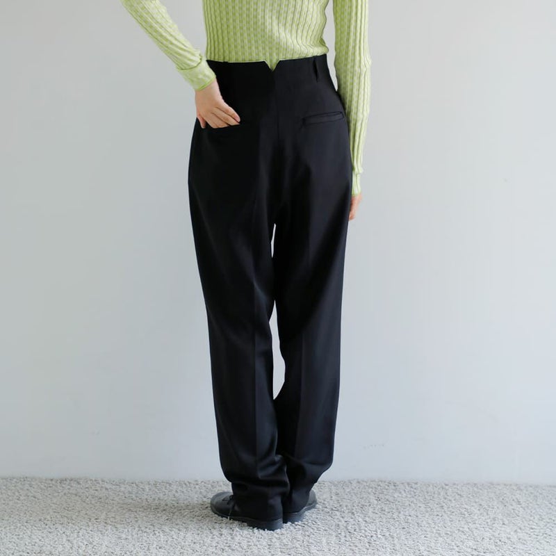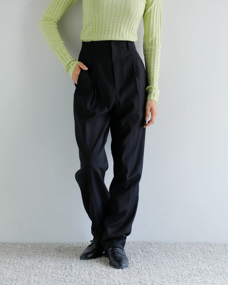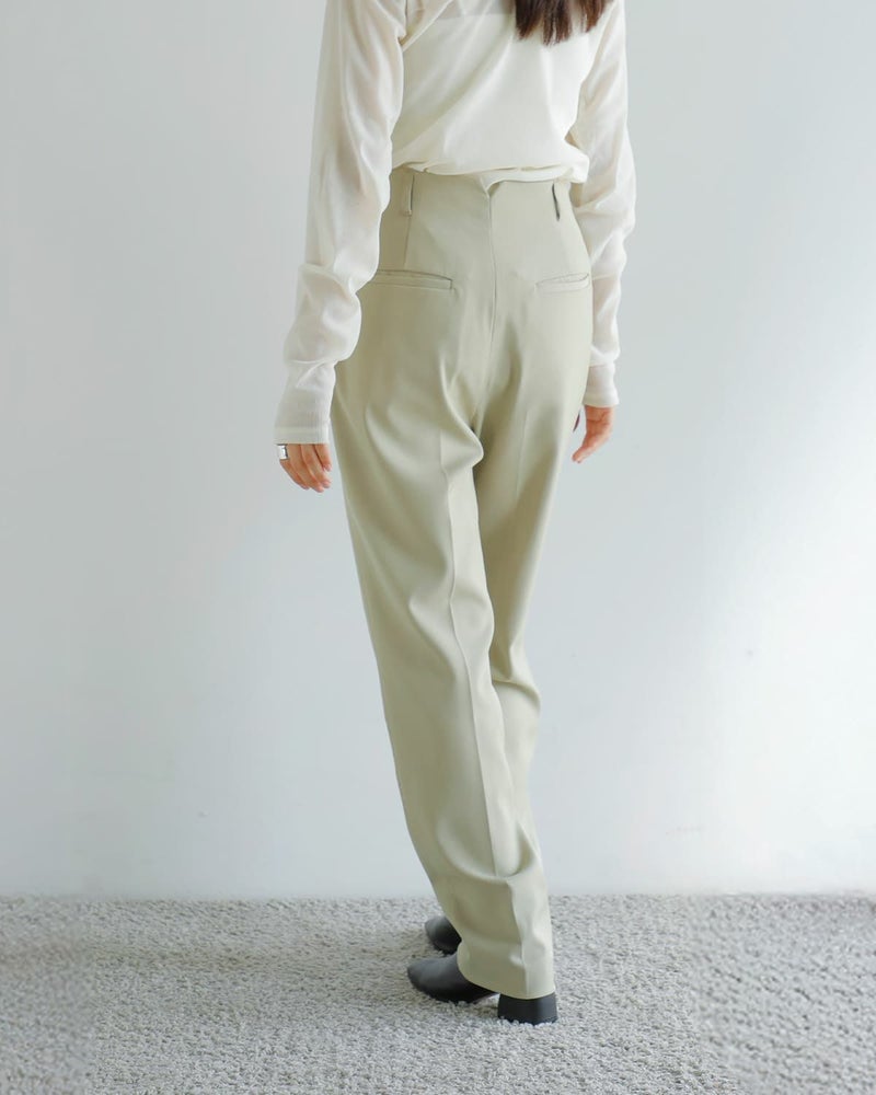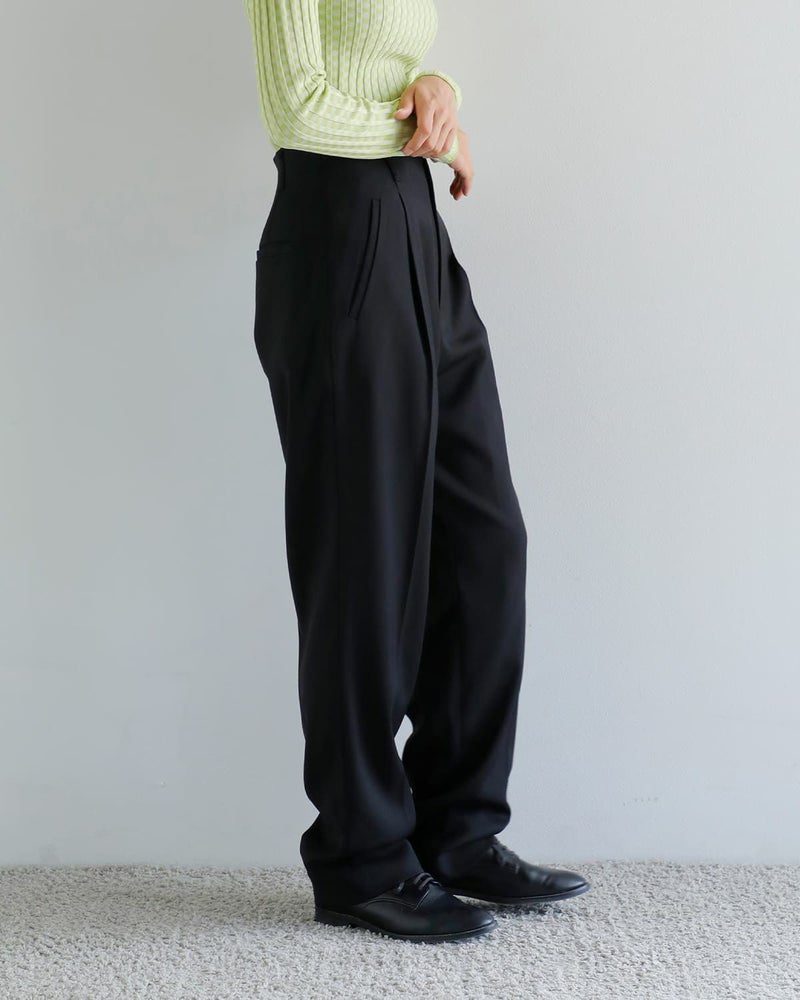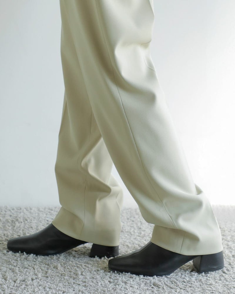 シワになりにくい素材とセンタープレスの効果で、上品さと実用性を兼ね備えているためオフィススタイルからカジュアルなデイリーコーデまで、幅広いシーンで活躍します。