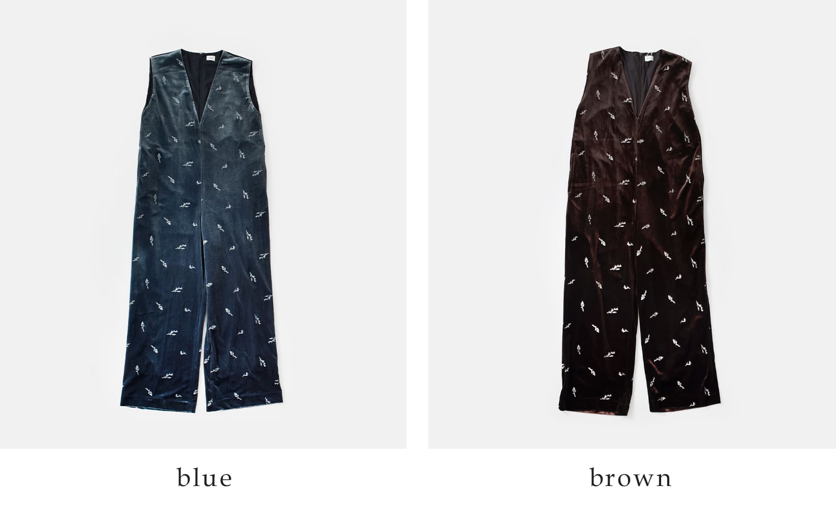 ノスタルジックな雰囲気漂うベロア生地のオールインワン。