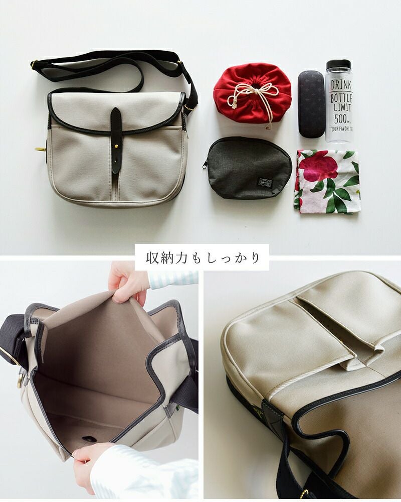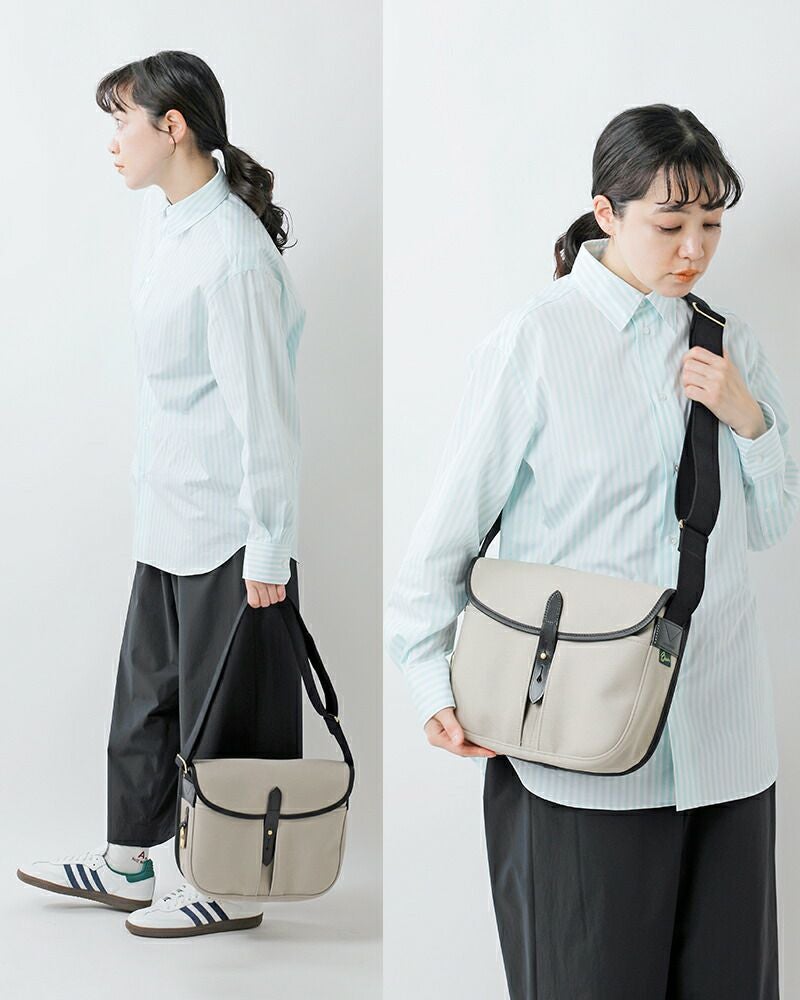 1950年に元々はフィッシング用のバッグとして発売された“STOUR”。使い勝手の良さのみならず、防水性のある生地に高級感のあるブライドルレザー、金具の真鍮などあらゆる部分にこだわりが行き届いています。時代の流行に左右されないデザインで、イギリスらしいオーセンティックな佇まいが男女問わず人気を博しているショルダーバッグです。