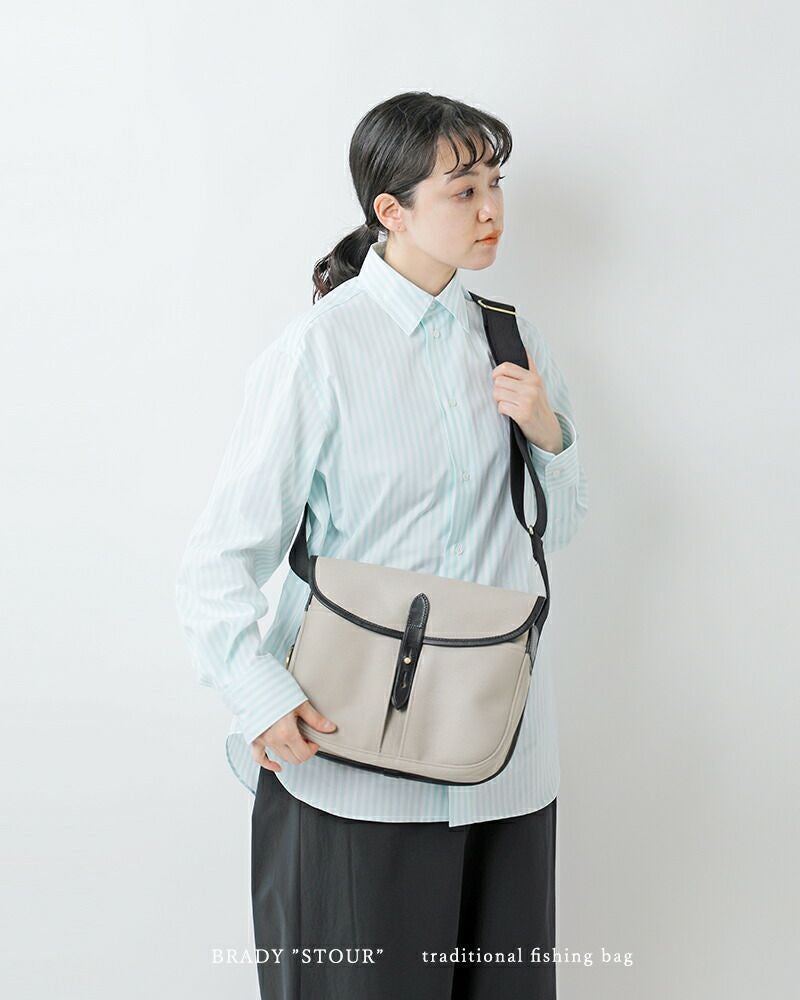 Brady(ブレディ)より、ツイルワンショルダーバッグ“STOUR”(ストアー)をご紹介します。フィッシング用のバッグとして開発されたブレディを代表するモデル“STOUR”。防水性のあるイタリア・リモンタ社製のコットンキャンバス「ドリルドロップ」や、トリミングにはイギリス最高品質のブライドルレザーを使用し、細部まで丁寧に作り込まれています。カジュアルながらもイギリスメイドの洗練を感じる逸品で、流行に左右されず、永くご愛用いただけます。