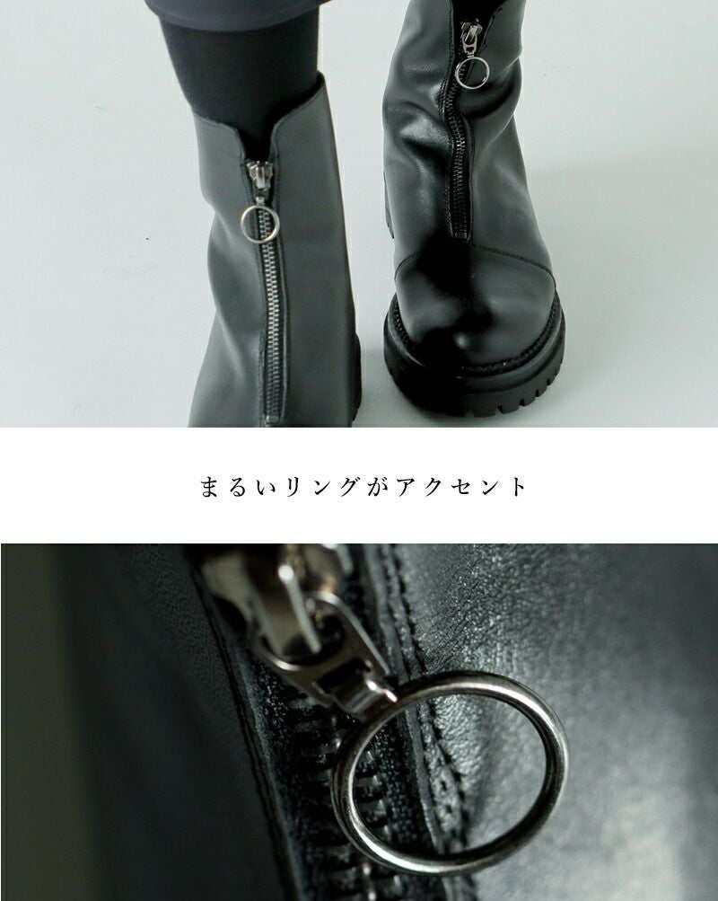ジップの引手が丸リングになったモードな一足はaranciatoでしか手に入らない別注アイテム。2023AWシーズン即完売し、今期待望のカムバッグ!女性がリアルに、心地よく履ける靴づくりを追求してきたKMBらしく、デザインと機能性のバランスが絶妙な一足に仕上がっています。