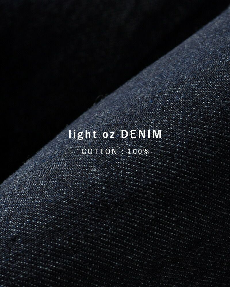 コットン 100% ライトオンデニムで、軽い着心地のデニム素材。柔らかい仕上がりなので、ゴワツキも少なく快適に過ごして頂けます。ジョンブルならではの自然なユーズド感が魅力。
