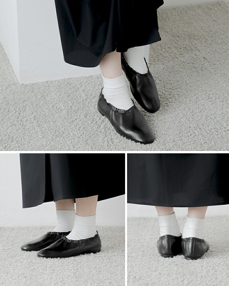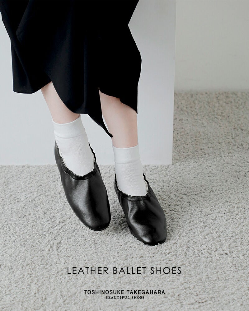 BEAUTIFUL SHOES(ビューティフルシューズ)よりレザー バレエ シューズのご紹介です。上質なレザーを使用したバレエシューズ。クラシックなバレエシューズをベースに、現代のライフスタイルに合うようデザインされた一足は、軽やかで柔らかく、日常に溶け込むような履き心地が魅力。アッパーとソールには上質でしなやかなレザーを採用し、足の動きに自然に馴染む「返りの良さ」も特徴です。セメント製法によるすっきりとしたシルエットも美しく、デイリーにもオケージョンにも活躍する仕上がりです。カラーはライトグレー、ブラック、シルバーの3色展開。