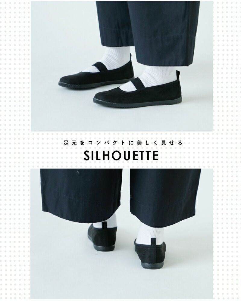 楽に脱ぎ履きできる、エコスエードのバレエシューズ