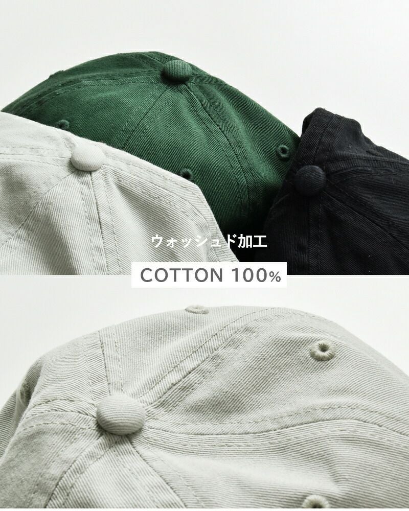 ウォッシュド加工を施したくったりと柔らかなコットン100%の生地を使用。軽くて通気性が良く、暑い夏場も快適な被り心地です。