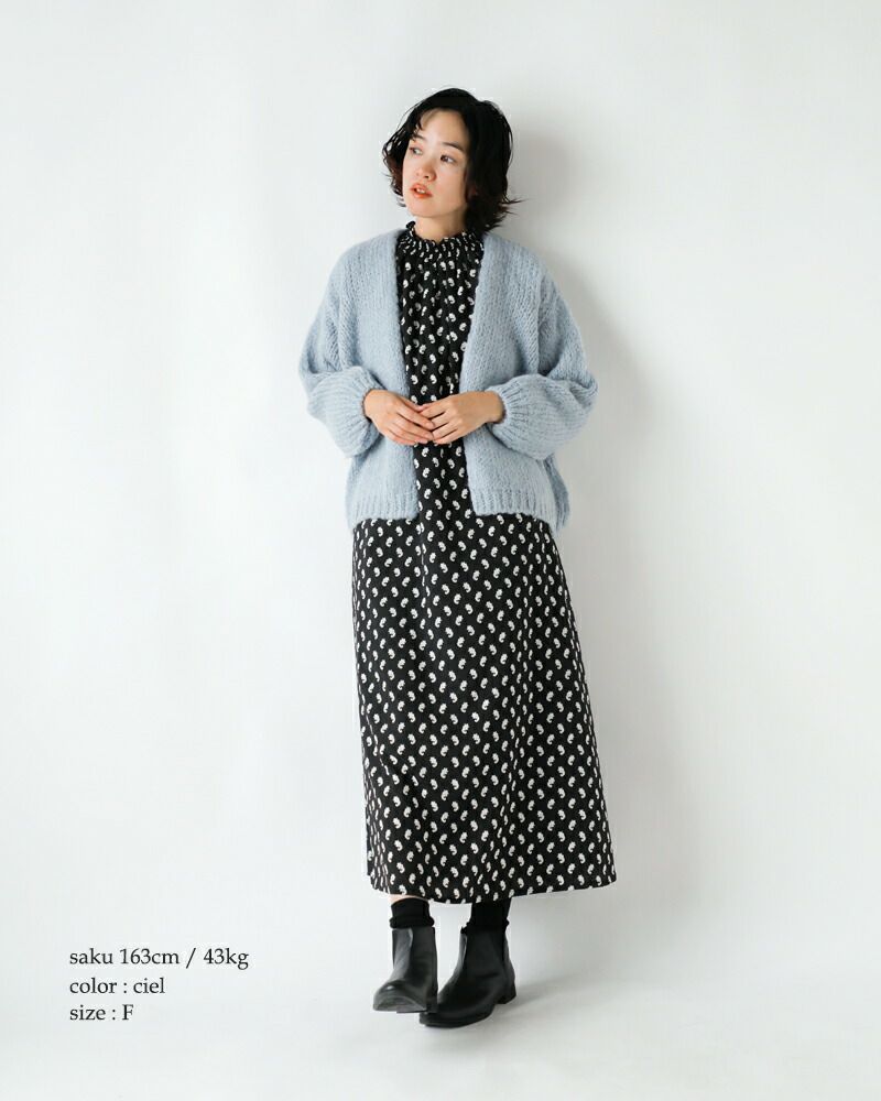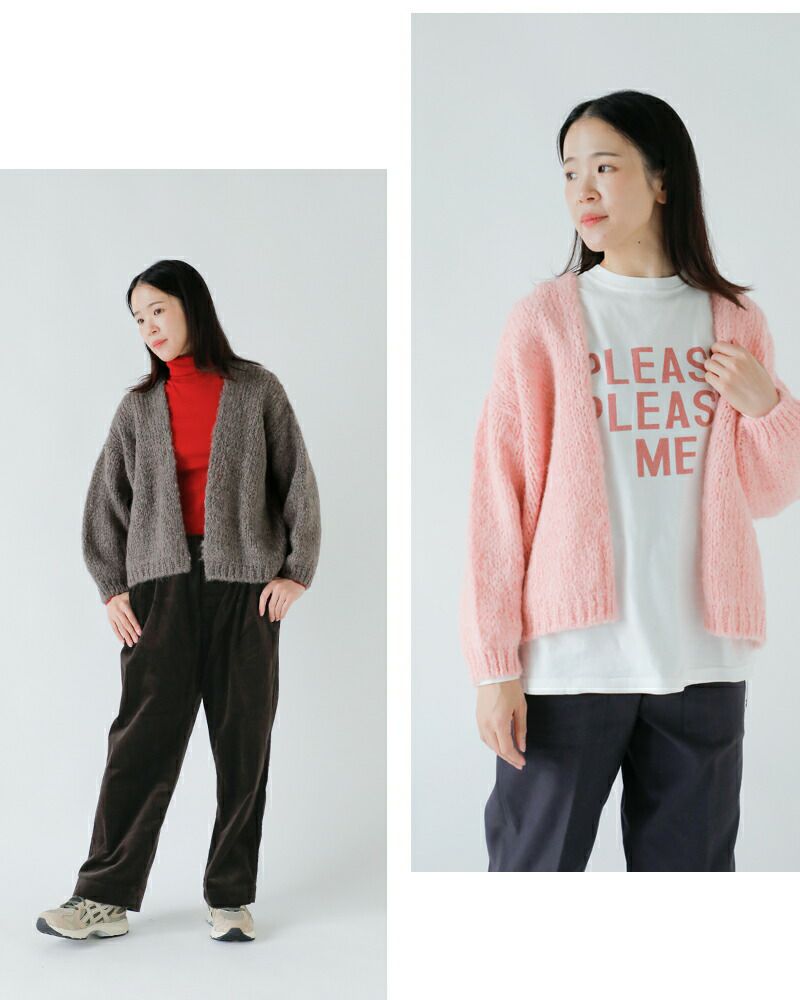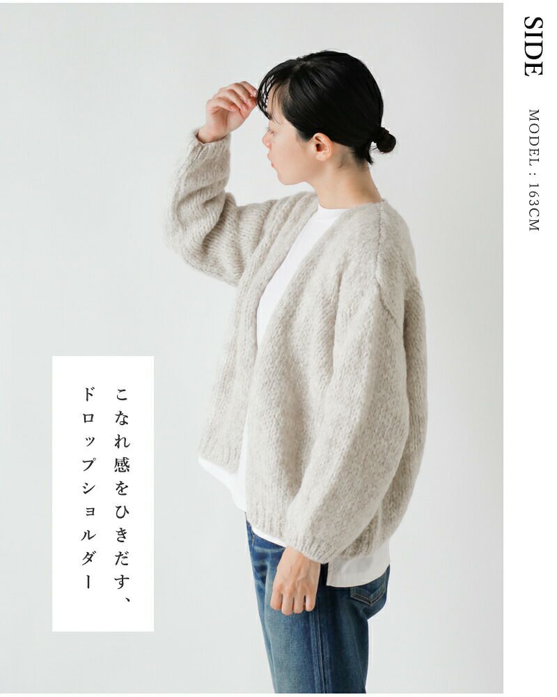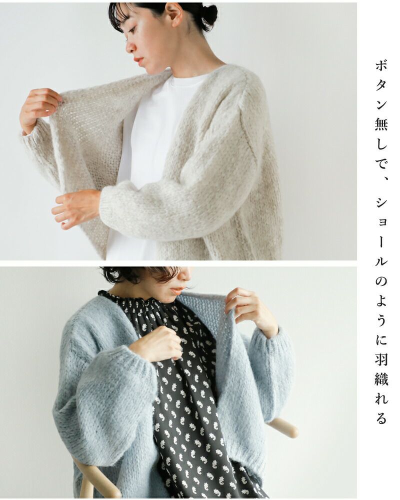 着心地も柔らかく、ふんわりとした女性らしい風合いはモヘヤ混ならでは。