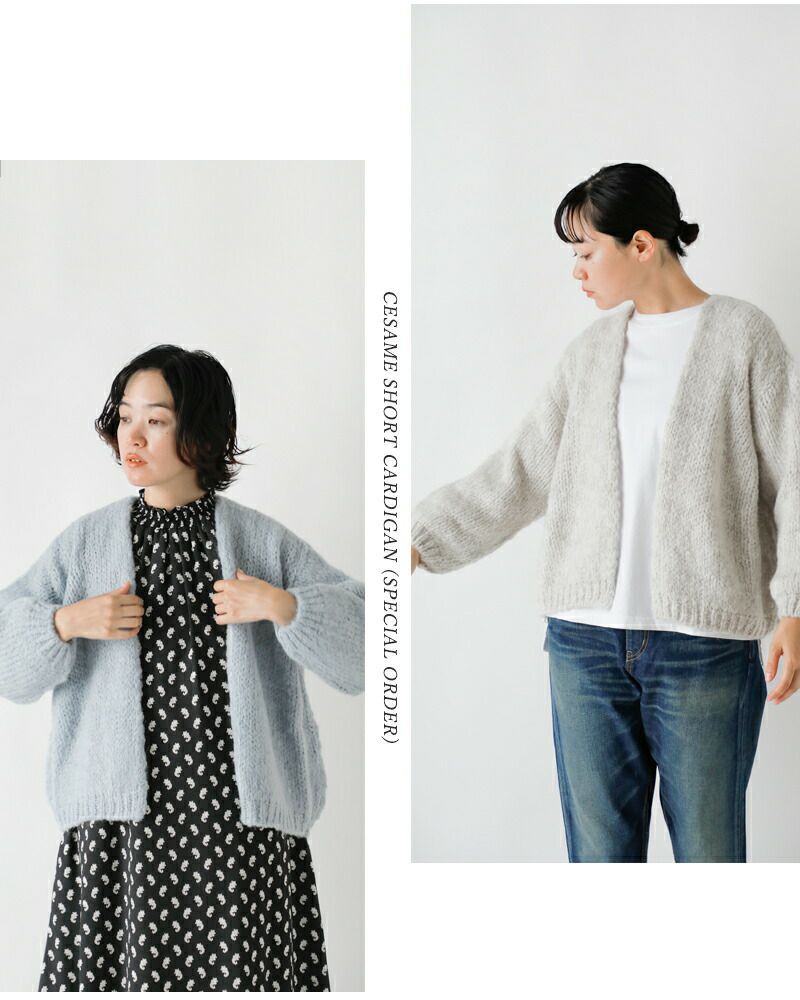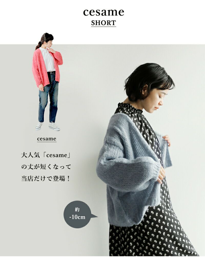 大人気「cesame」の丈が少し(約-10cm)短くなって、当店だけで登場です。丈が短くなることによって、ボトムスとのバランスも良く、よりスッキリとした着こなしに。ワンピースの上からサッと羽織るにも丁度良い丈感です。