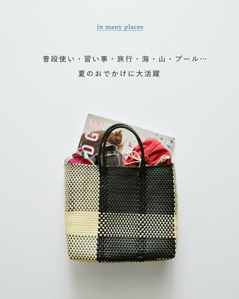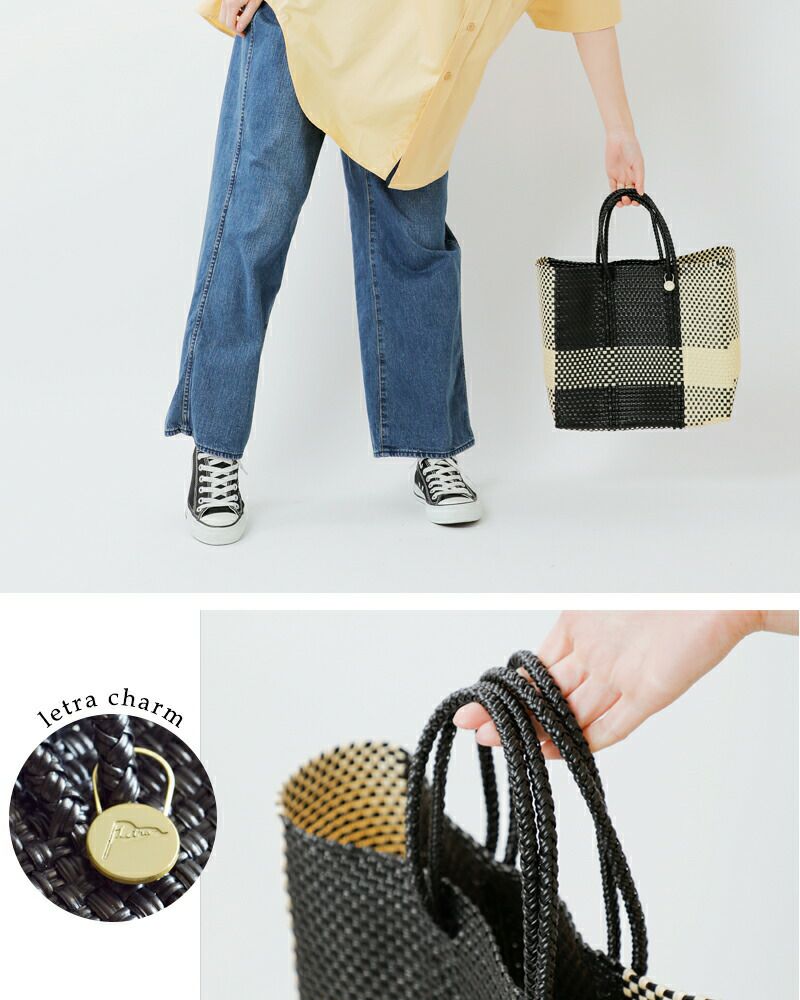 Letra(レトラ)より、メルカドバッグ S “CROSS LINE / MINI CHECK”のご紹介です。見た目の可愛らしさと使い勝手の良さを兼ね備えたメキシコ生まれの万能バッグ。メルカド(=市場)バッグという名前のとおり、メキシコではマルシェバッグとして利用される丈夫なつくりです。こちらはシンプルなクロスラインシリーズのSサイズ。A4サイズが横に入る大きさで、荷物がたくさん入り、普段使いにもピッタリ。大人の装いにもスッと溶け込む落ち着いたお色展開も魅力です。