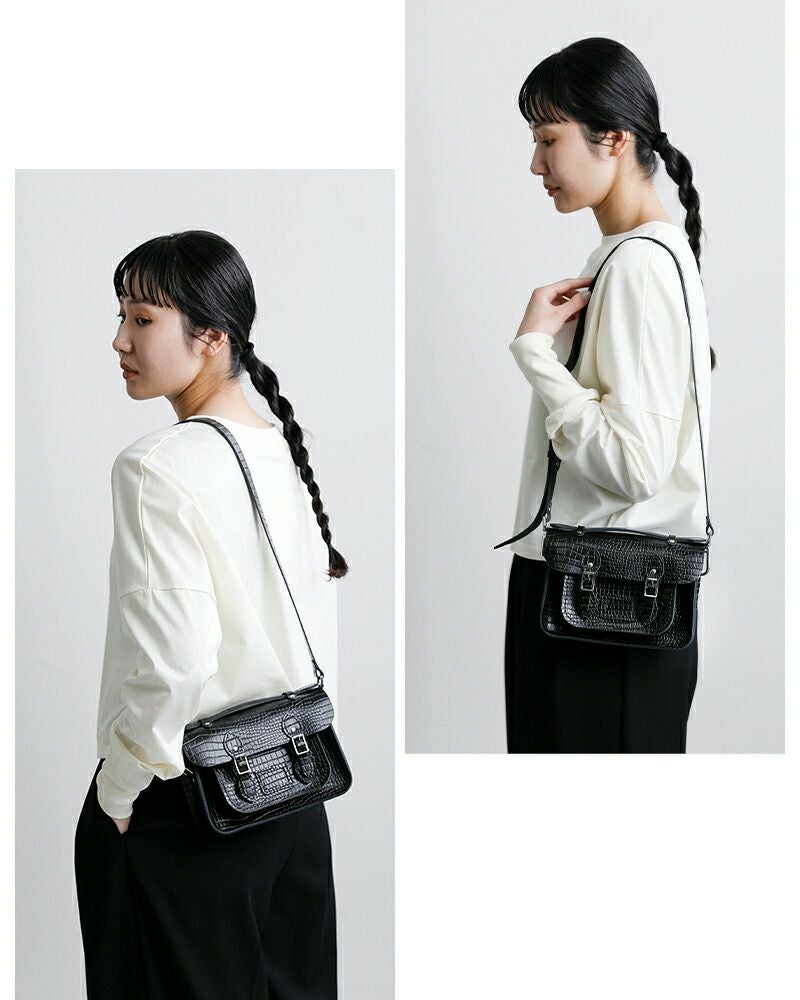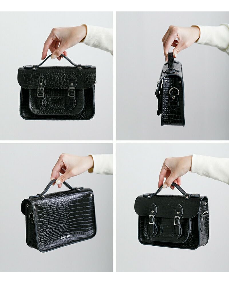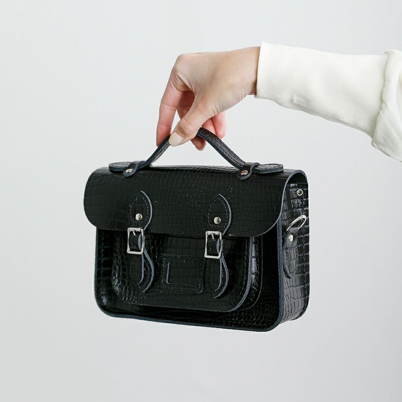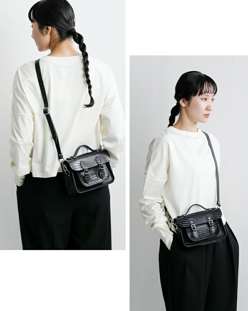 CAMBRIDGE SATCHEL(ケンブリッジサッチェル)よりカウレザー 2way ミニ サッチェルバッグ “The Mini”のご紹介です。イギリスで学生カバンとして親しまれてきた、伝統的なスタイルのサッチェルバッグを愛らしいサイズに凝縮したアイテム。手持ちで上品に決まるトップハンドルに加え、取り外し・長さ調節が可能なスリムショルダーストラップを装備。友人と公園で会う時や、自転車に乗ってアクティブに動く時など、その日の気分やシーンに合わせてスタイルを自在に変えられます。カラーによって異なる3つのレザーの質感が装いに高級感をプラスします。