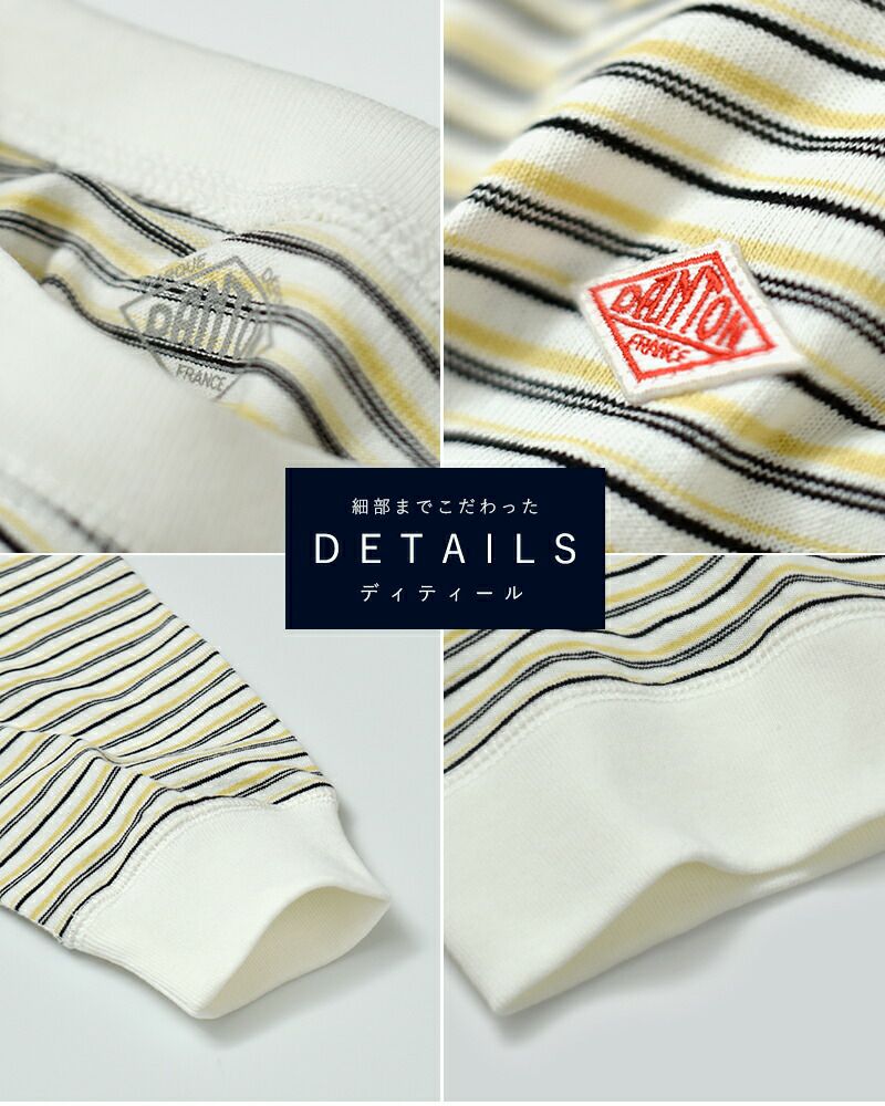 DANTON(ダントン)よりオープンエンドジャージーマルチボーダースウェットTシャツのご紹介です。袖、裾に長めのリブをつけたスウェットライクな仕様が特徴。ゆったりとしたボディに適度な着丈で、袖に膨らみを持たせたシルエットです。ピッチ違いのボーダー柄が爽やかでコーデのアクセント使いにぴったり。一枚で着ても様になり、ジャケットのインナーなどにも重ねやすく、様々なスタイルにマッチする汎用性の高いアイテムです。