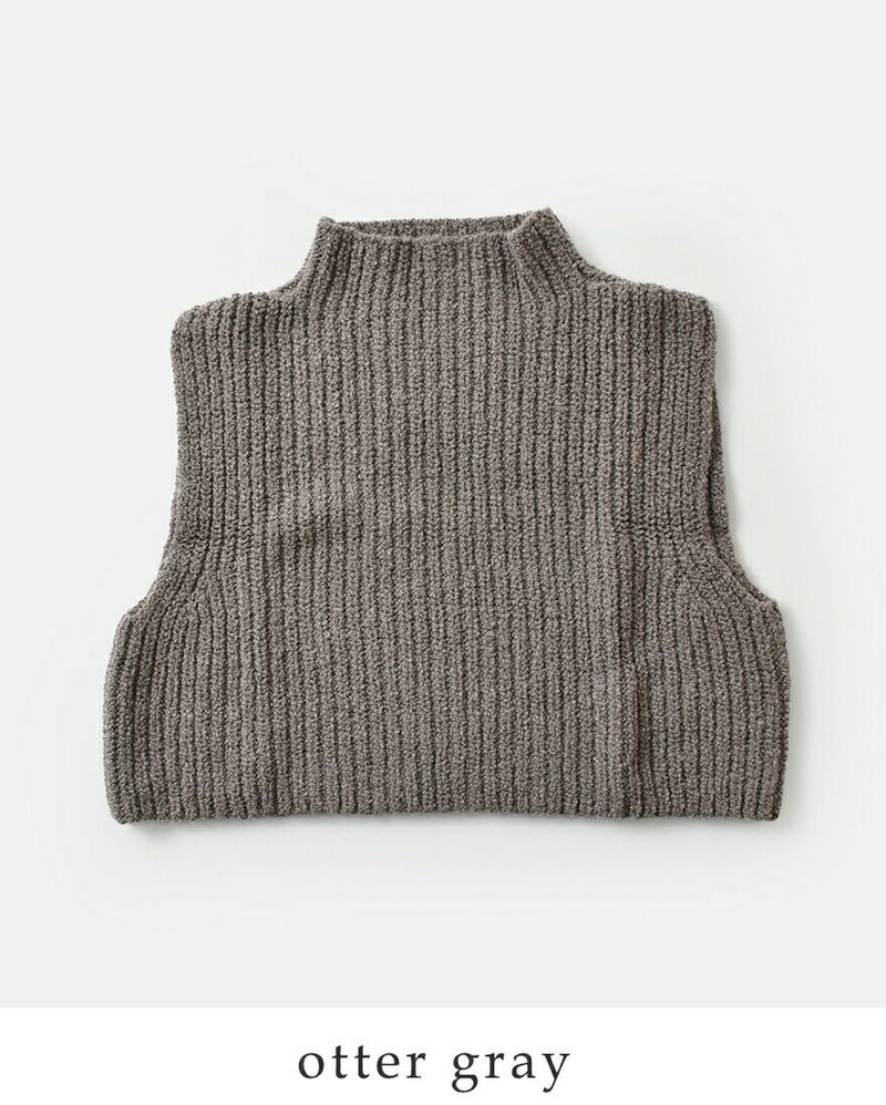 立ち上がったネックラインがさりげないアクセントとなり、シンプルなシャツやワンピースに重ねるだけで、奥行きのあるスタイルに。